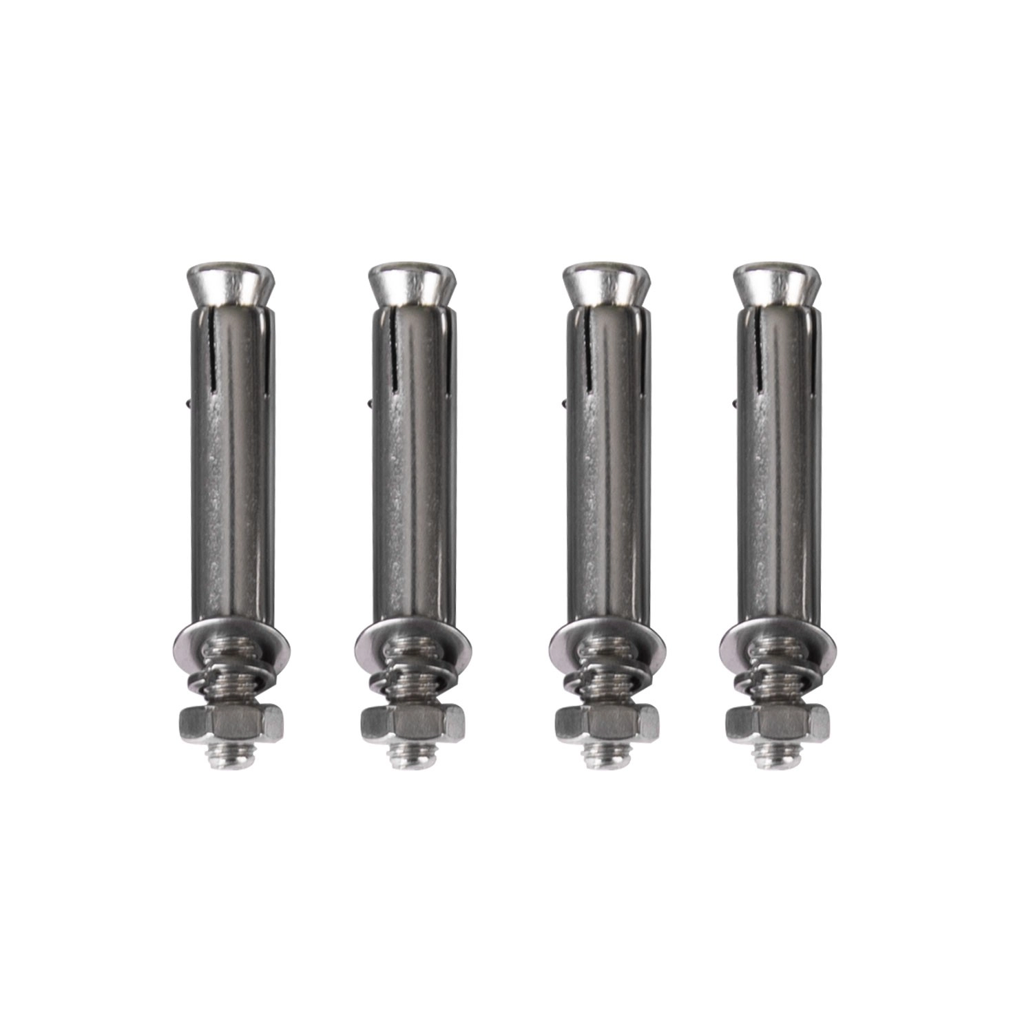 Štiri raztezni vijaki s podložkami in maticami za zanesljivo pritrditev v beton ali polno opeko.