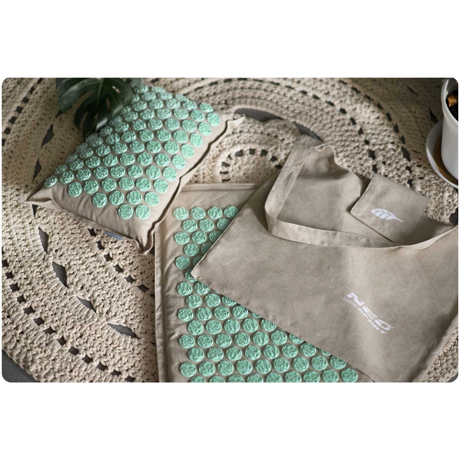 Akupresurna blazina z vzglavnikom Neo-Sport, sivo‑mint