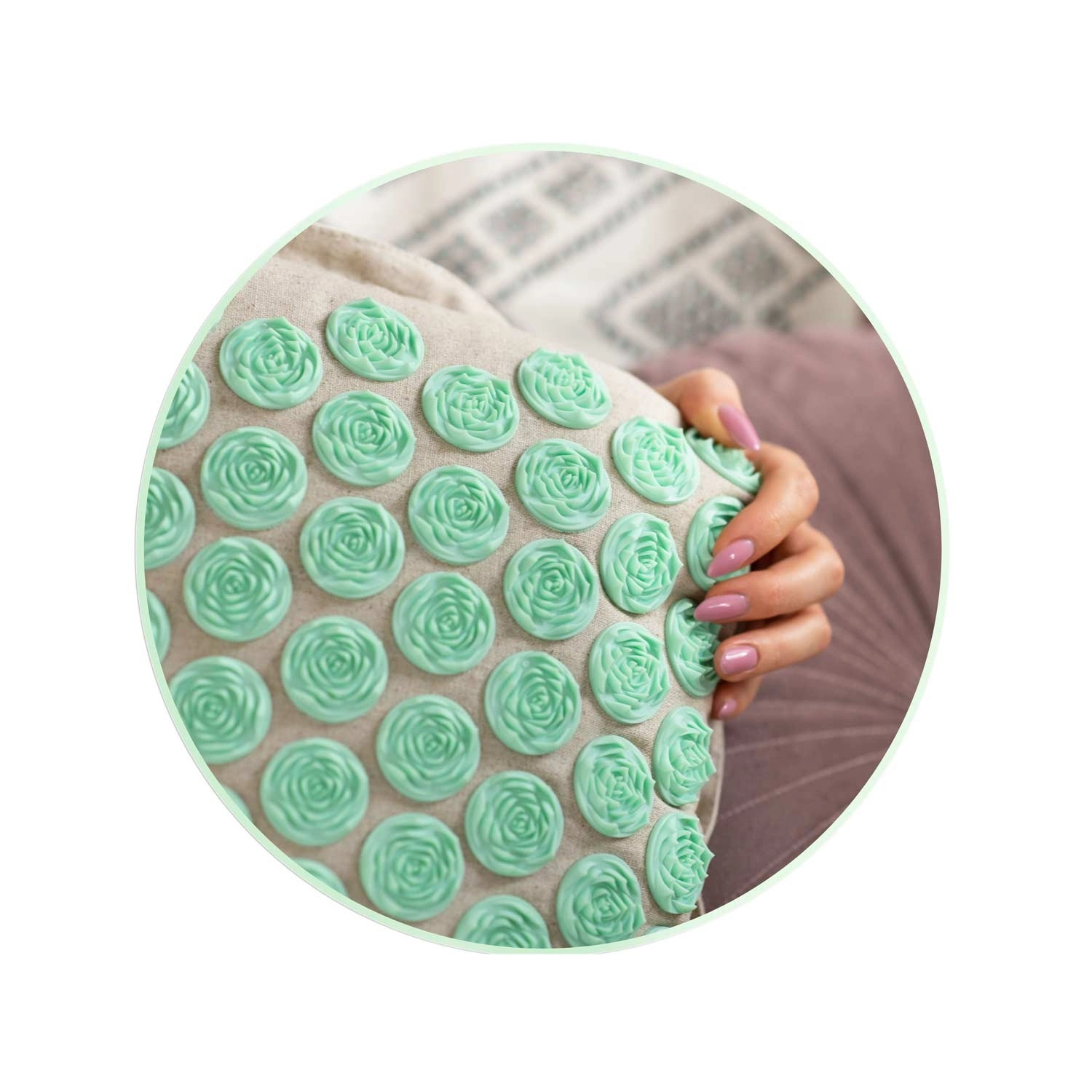 Na blazini je 181, na vzglavniku pa 76 rožic z nežnimi konicami, ki stimulirajo akupresurne točke, spodbujajo prekrvavitev in sproščajo mišično napetost za hitrejšo regeneracijo.