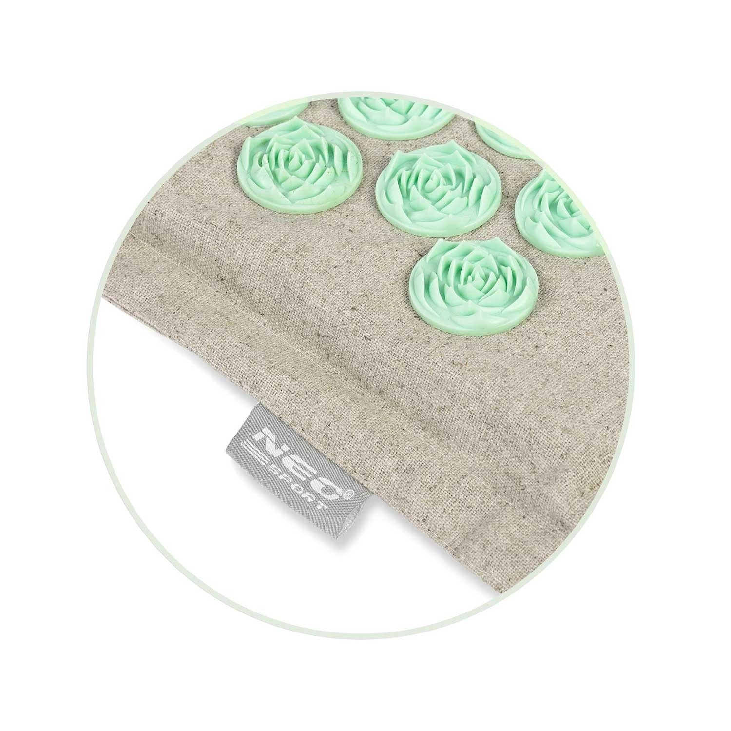 Akupresurna blazina NEo-SPORT v sivo‑mint barvi je zasnovana za vsakodnevno domačo relaksacijo in regeneracijo po športu. Gosto razporejene rožice aktivirajo akupresurne točke, spodbujajo prekrvavitev, sproščajo mišično napetost in lahko pomagajo pri bolečinah v hrbtu, vratu in glavi ter pri stresu. Zaradi naravnega jedra iz kokosovega vlakna blazina ostane zračna, higienska in stabilna.