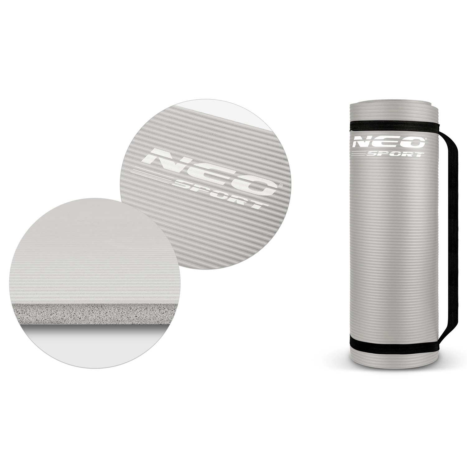 Univerzalna vadbena podloga NEO SPORT v sivi barvi ponuja odlično amortizacijo, protizdrsno površino in udobje za vsakodnevni trening. Zahvaljujoč materialu NBR je vzdržljiva, vodoodporna, enostavna za čiščenje in prijetna na dotik. Idealna za jogo, pilates, fitnes, raztezanje in domačo vadbo.
