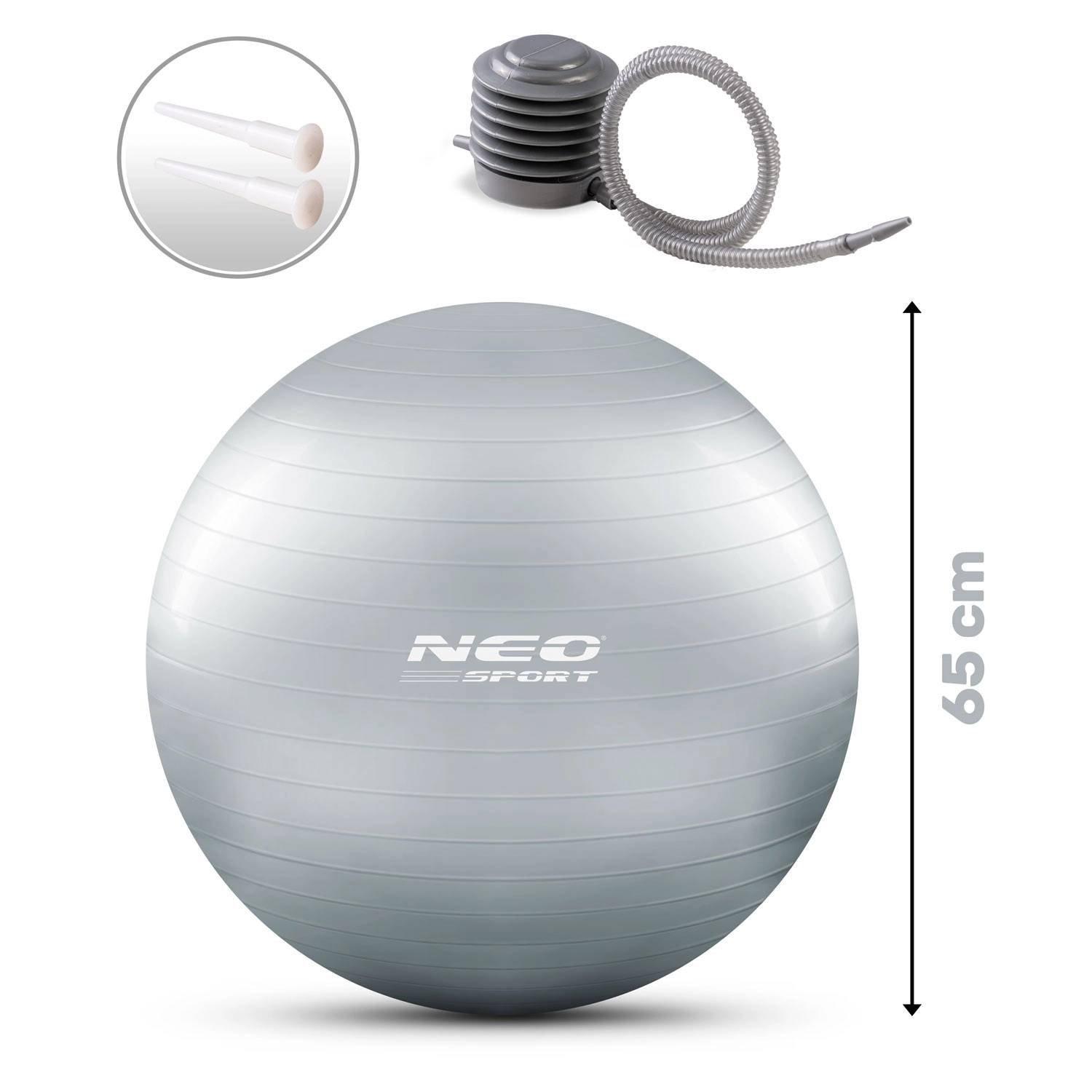 Univerzalna gimnastična žoga s premerom 65 cm v srebrni barvi je idealna za vadbo doma, rehabilitacijo in pisarno. Ponuja varnostni sistem anti-burst, protizdrsno površino za zanesljiv oprijem in stabilnost ter je izdelana iz odpornega PVC, prijaznega do okolja. V paketu je priložena brezplačna pumpa z dvema nastavkoma za hitro napihovanje.