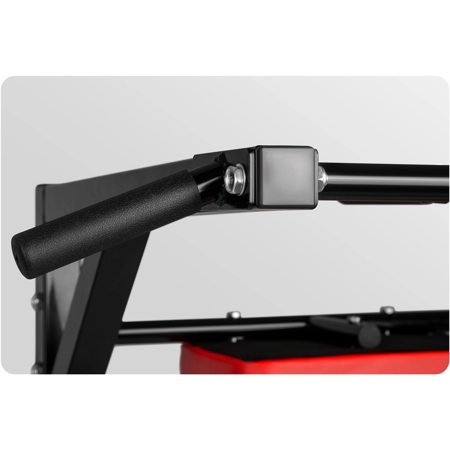 Oblazinjene opore za hrbet in roke nudijo zaščito pri dipih in dvigovanju nog. Različne širine in koti oprijema razširijo nabor vaj.
