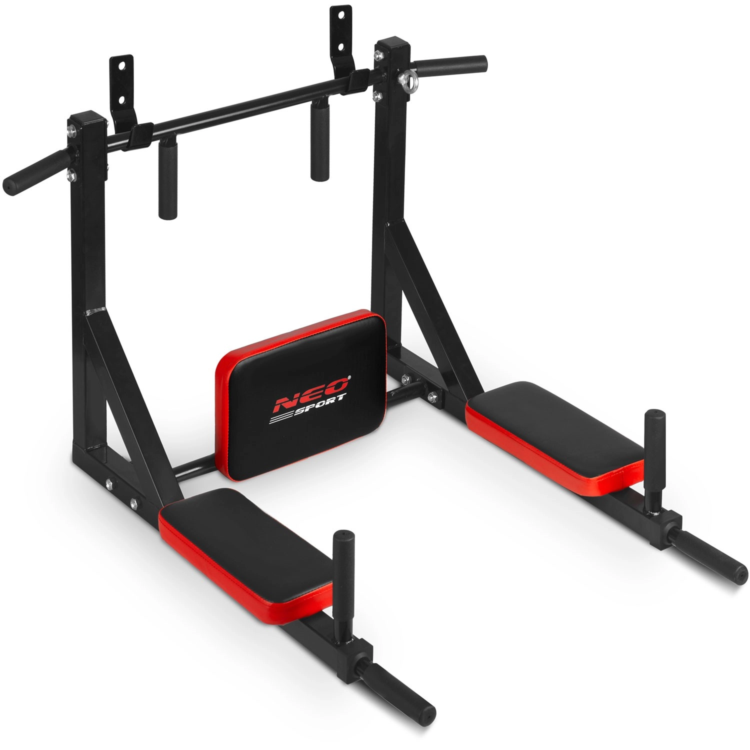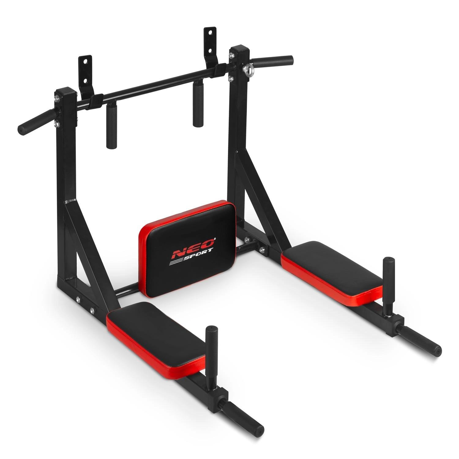 Stenska drogova postaja z oporo NEO SPORT NS-319 je univerzalna rešitev za domači močnejši trening. Trden jekleni okvir z udobnimi oblazinjenimi oporami za roke in hrbet zagotavlja stabilnost in udobje pri vajah, kot so zgibi, dipi ter dvigi kolen in nog. Osem nedrsečih oprijemov omogoča varen in raznolik trening.