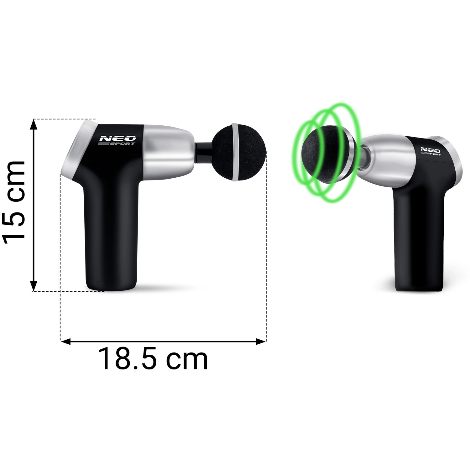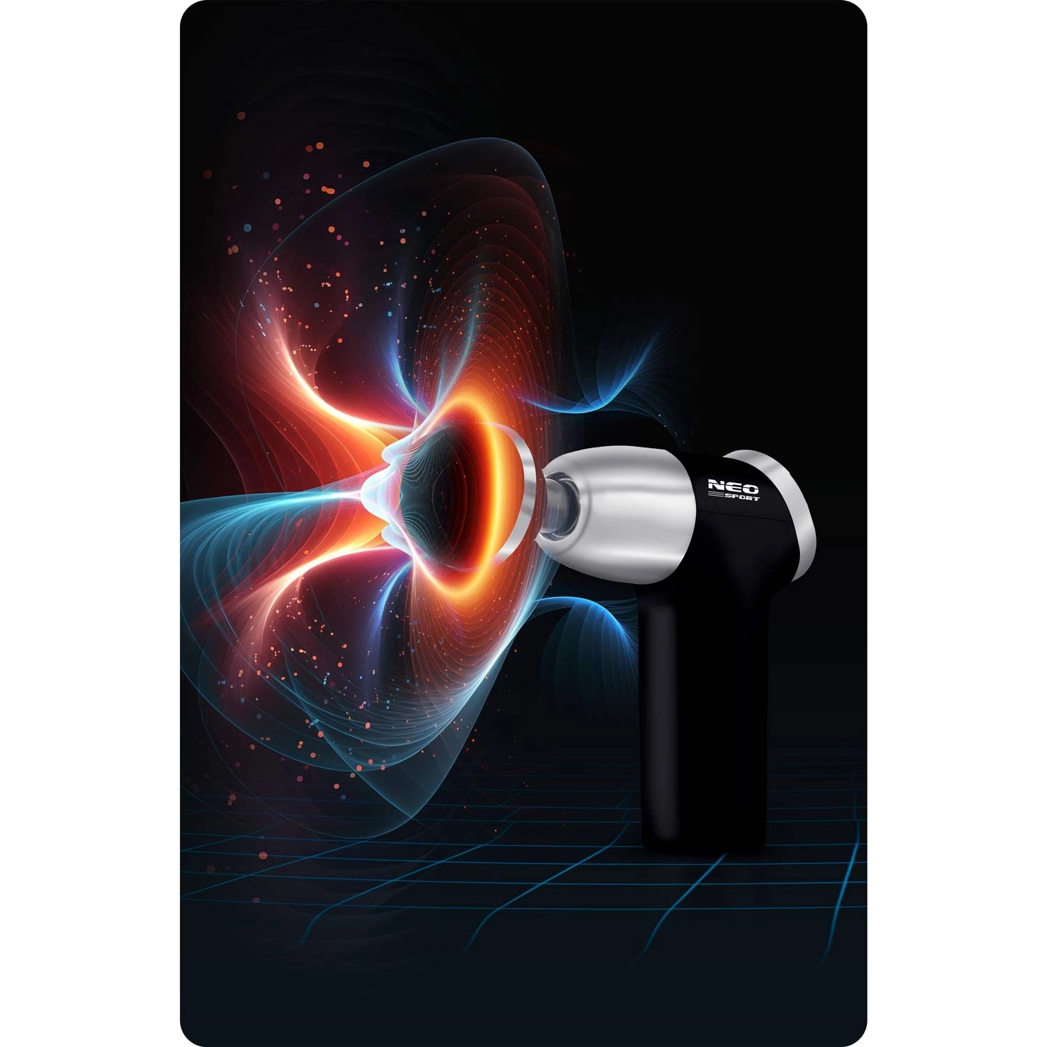 NEO Sport NS-500 je zanesljiva perkusijska masažna pištola, ki cilja globoko v mišična vlakna ter pomaga pri sprostitvi togih predelov, hitrejši regeneraciji in ogrevanju pred raztezanjem. Zahvaljujoč 8 nastavkom zlahka izberete idealen tip pritiska in površino delovanja – od širokih mišičnih skupin do natančne točkovne masaže.