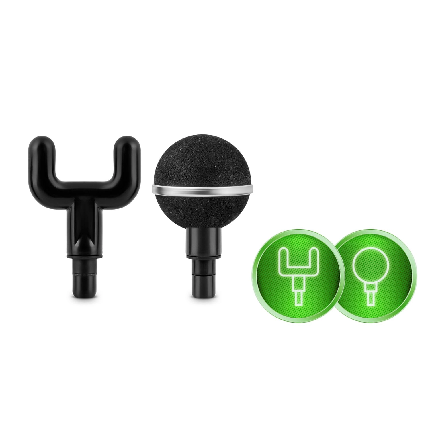 Izberite natanko tisti nastavek, ki ga vaše mišice potrebujejo: vilica za področje ob hrbtenici in Ahilovi tetivi, krogla za večje mišične skupine, ploska glava za toge predele, konica za intenzivno točkovno masažo ter drugi specialni oblikovani nastavki za zapestje, občutljiva mesta ali široke poteze.