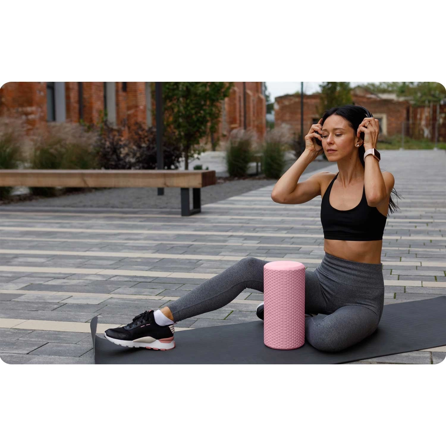 Mere 30 × 15 cm in nizka teža olajšajo prenašanje. Vzemite valj v telovadnico, na prosto ali na pot.