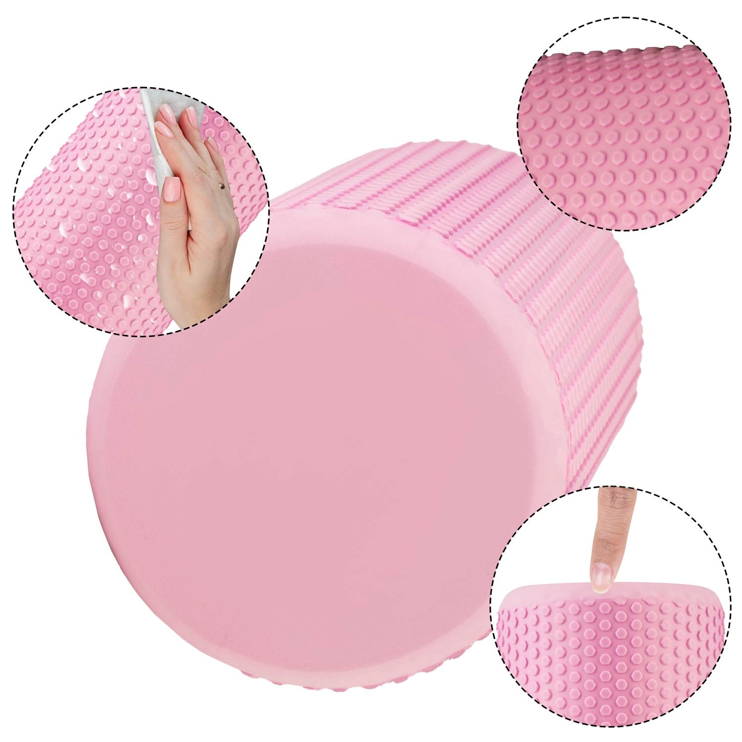 Rožnat masažni valj iz EVA pene je zasnovan za učinkovito samomasažo in miofascialno sproščanje po treningu ali napornem dnevu. Trdna, a prijetno čvrsta konstrukcija pomaga izboljšati gibljivost, zmanjšati mišično napetost in pospešiti regeneracijo. Zahvaljujoč protizdrsni teksturi s točkami zanesljivo ostane na mestu in nudi ciljan pritisk na mišice.