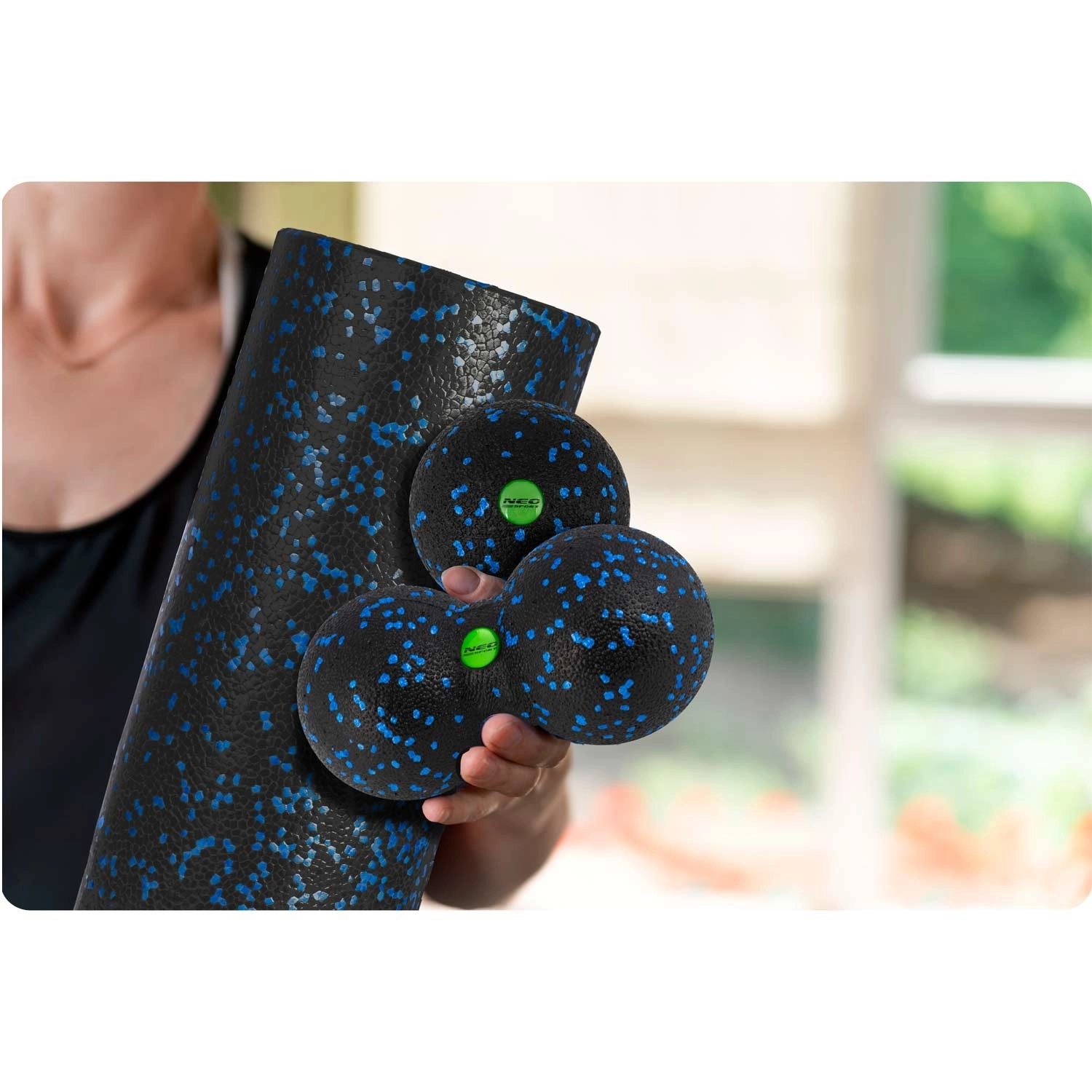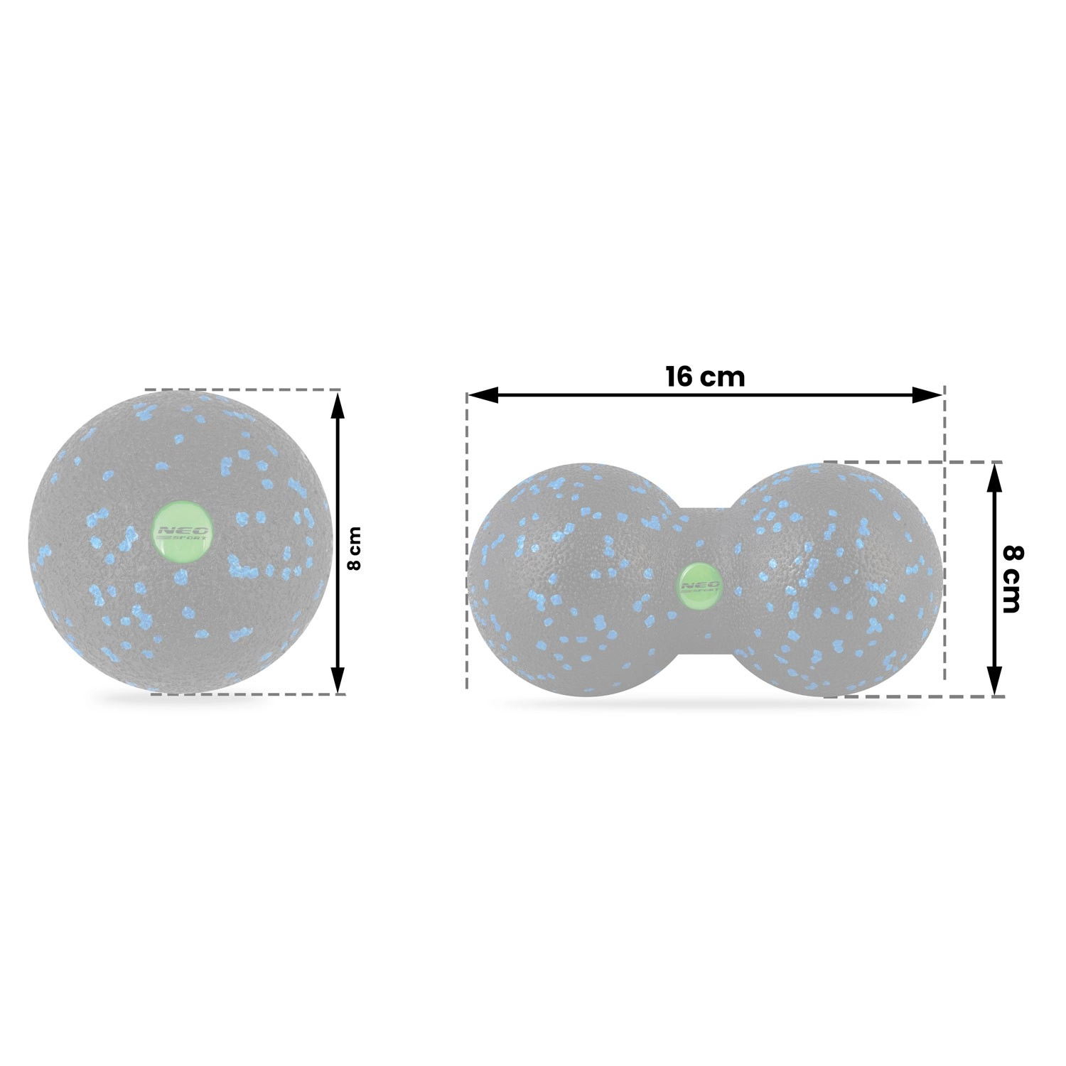 Dvojna žogica se natančno prilega ob hrbtenico in omogoča varen pritisk na paravertebralne mišice brez neposrednega pritiska na vretenca. Idealno za predel vratu, prsne in ledvene hrbtenice.