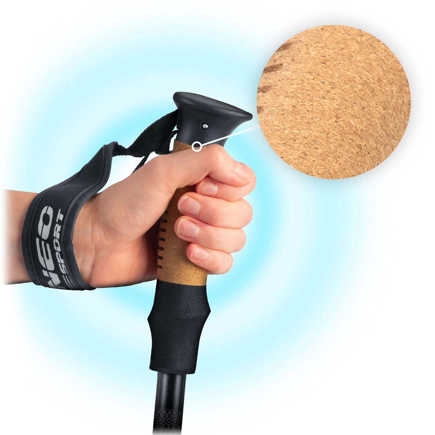 Odkrijte gorske steze in mestne poti z zanesljivostjo in udobjem. Trek palice Neo-Sport NS-380 združujejo lahkotnost in izjemno vzdržljivost zlitine AL 7075 z udobjem plutenega ročaja in mehkega, enostavno nastavljivega paščka. S tekočo teleskopsko nastavitvijo 65–135 cm jih preprosto prilagodite svoji višini in terenu, v zloženem stanju pa jih udobno pritrdite na nahrbtnik.