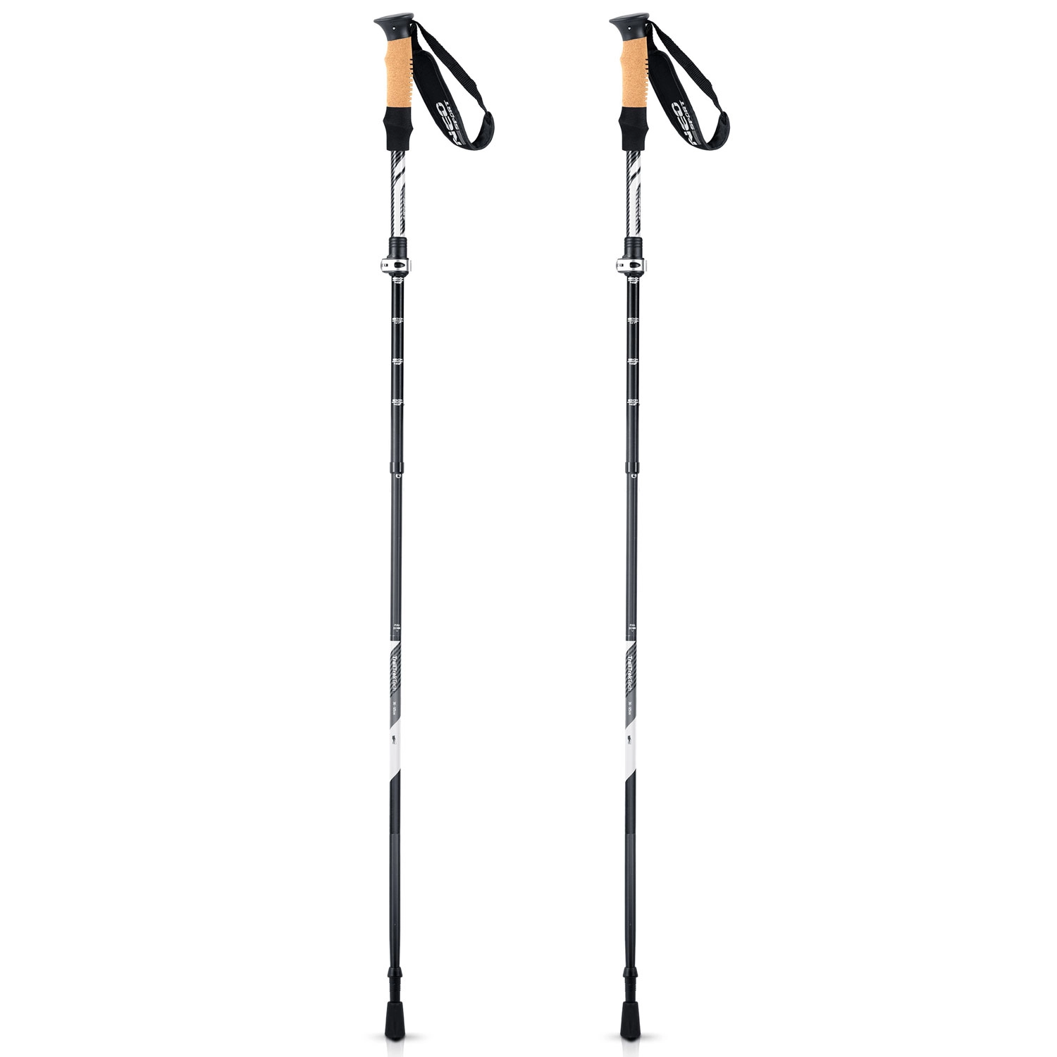 Lahke in trpežne treking palice za pohodništvo in gorske vzpone z gladko nastavitvijo dolžine 85–130 cm. Ponujajo ergonomski plutovinast ročaj, hiter sistem Click&Go za zlaganje in nastavitev, nizko maso iz aluminija AL 7075 ter set zamenljivih nastavkov za asfalt, kamen, blato, pesek in sneg. Vključno s torbico za prenašanje.