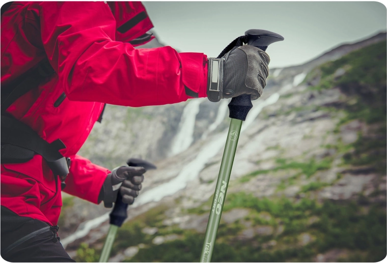 Trisegmentne aluminijaste palice iz trpežne zlitine AL 7075 preprosto prilagodite glede na teren in višino. Nizka teža olajša nošenje v nahrbtniku.