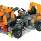 Mali zgibni gradbeni damper obvlada tudi zahtevnejši »teren«. Trdna konstrukcija in vrtljivi deli podpirajo realistično igro ter razumevanje osnovnih mehanskih principov.