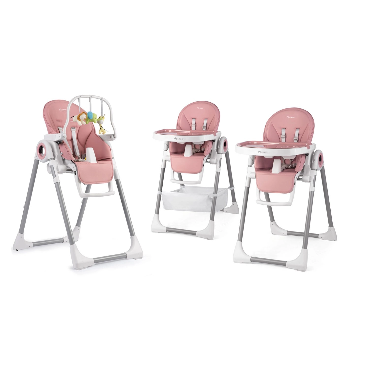 Roza otroški stolček za hranjenje NUKIDO Belo 3v1 z nastavljanjem in pladnjem