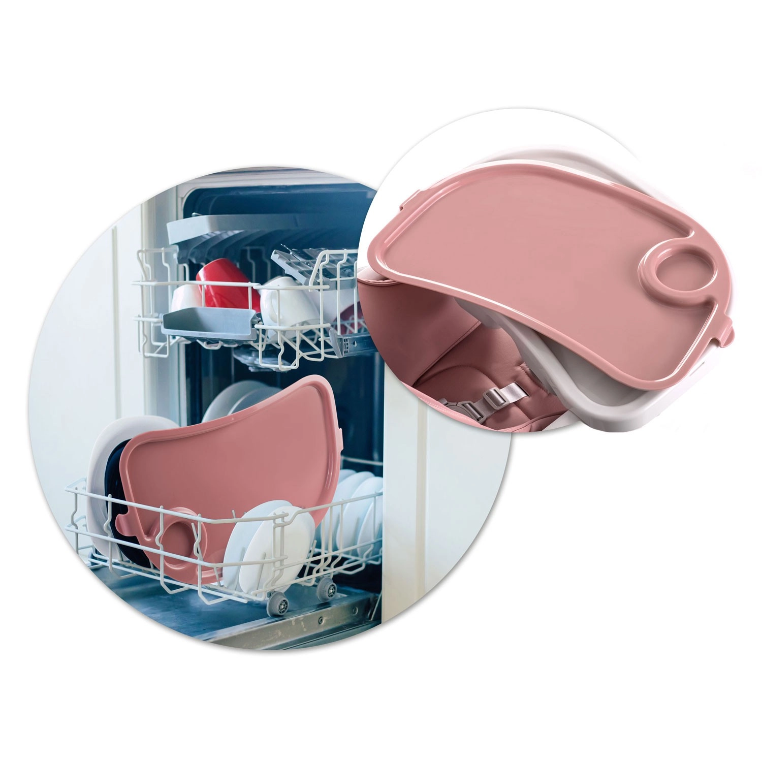 Pladenj z dvignjenimi robovi je odstranljiv, zgornji vložek pa lahko sperete pod vodo ali v pomivalnem stroju – čiščenje po obroku je opravljeno v trenutku.