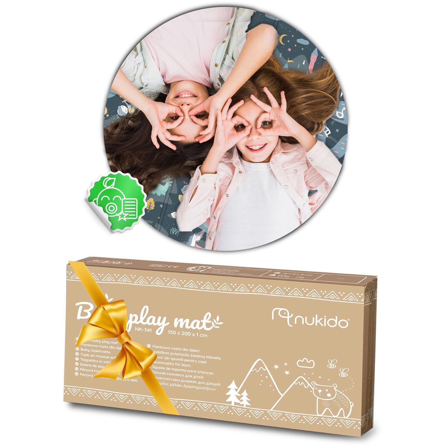 Praktična zložljiva otroška podloga NUKIDO v velikosti 200 × 150 × 1 cm nudi mehko blaženje padcev, dvostranski dizajn s čarobnimi ilustracijami ter preprosto čiščenje za vsakodnevno igro. Je vodoodporna, protizdrsna in zahvaljujoč peni XPE brez BPA, PVC in ftalatov varna tudi za alergike. Hitro se zloži v kompaktno obliko, zato jo zlahka pospravite ali vzamete s seboj na piknik, vadbo ali na potovanja.