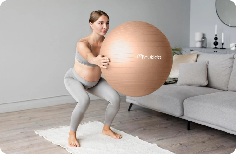 Univerzalna nosečniška in fitnes žoga NUKIDO s premerom 65 cm je idealna za vadbo, rehabilitacijo in udobno sedenje. Ponuja varno tehnologijo Anti-Burst, protizdrsno površino in visoko nosilnost do 200 kg. V paketu najdete brezplačno tlačilko in nadomestne čepe za enostavno uporabo doma ali v fitnesu.