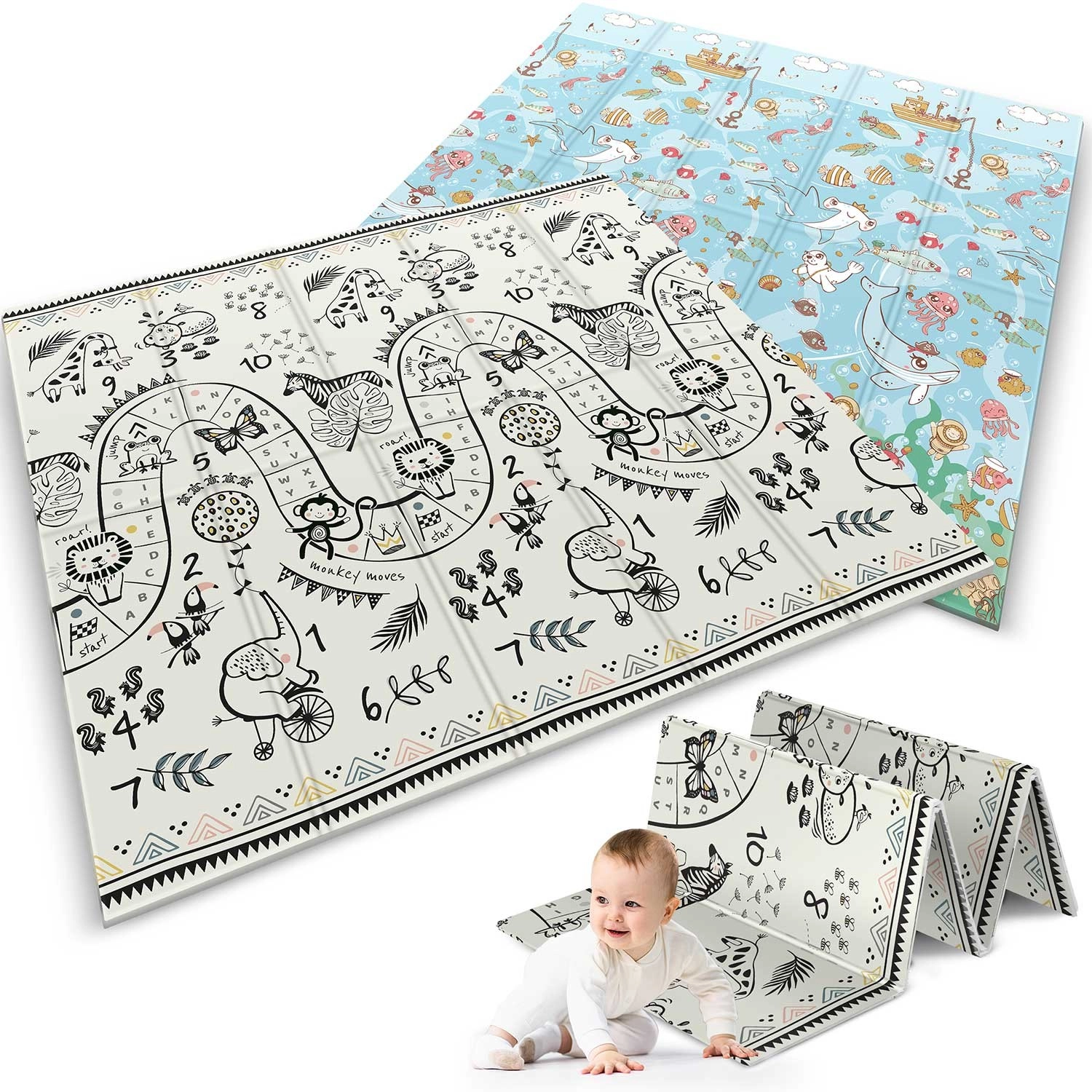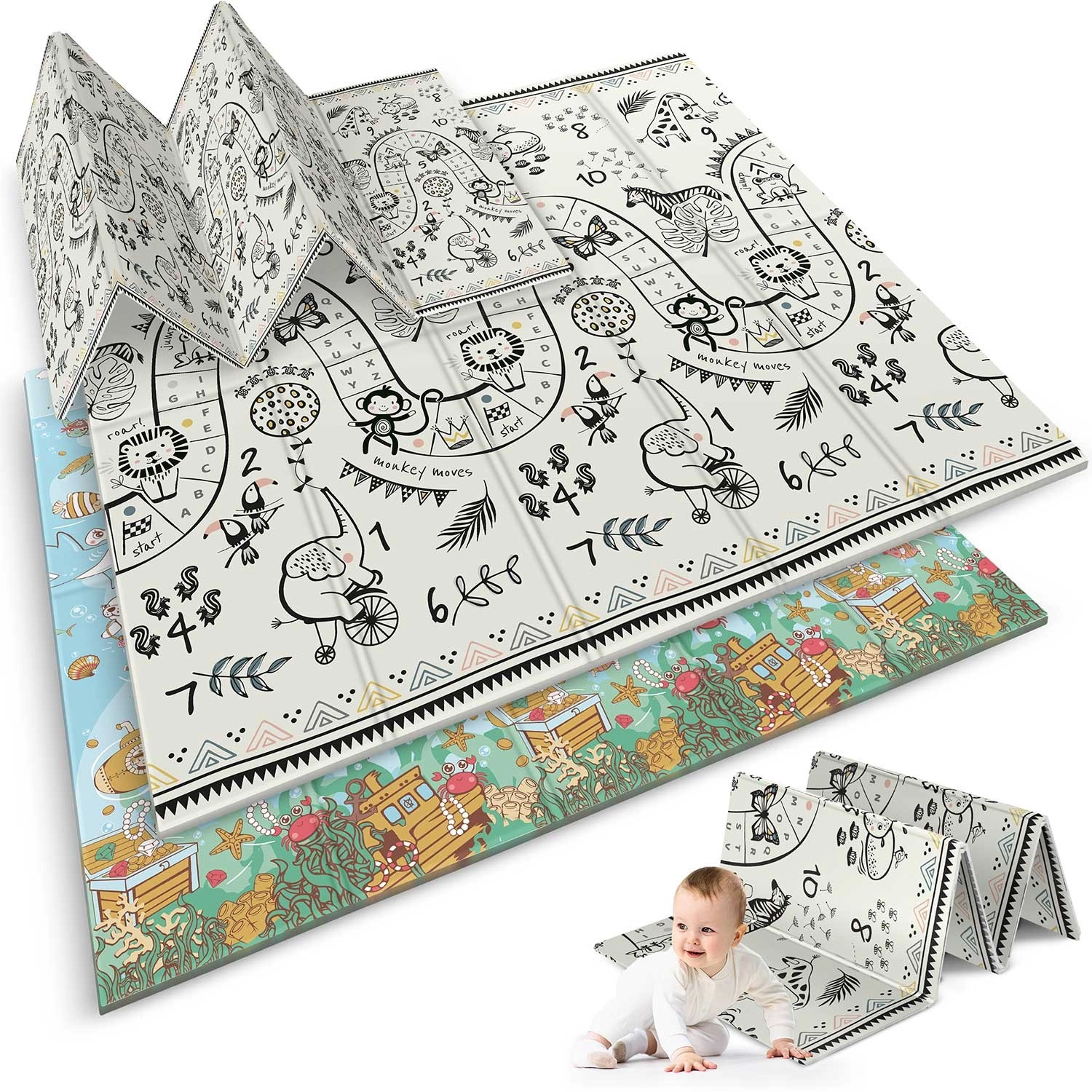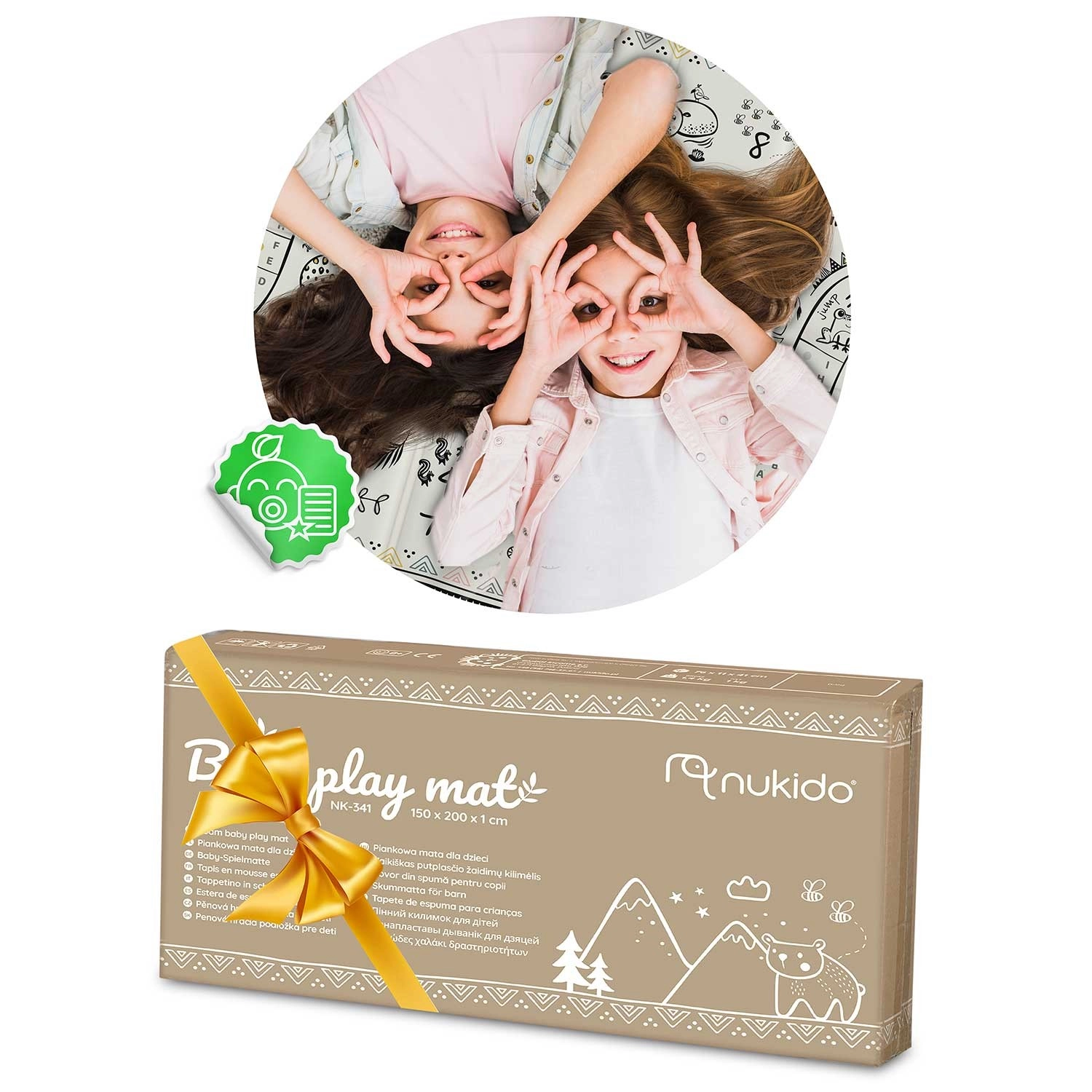 Velika zložljiva podloga NUKIDO z merami 200 × 180 × 1 cm nudi mehko blaženje padcev, toplotno izolacijo od hladnih tal in obojestranski dizajn ocean–safari za zabavo in učenje. Je vodoodporna, enostavna za čiščenje, ima protizdrsno obdelavo in je izdelana iz varne XPE pene brez BPA, PVC, ftalatov in formamida. Idealna za igro, plazenje, prve korake, vadbo in piknik.