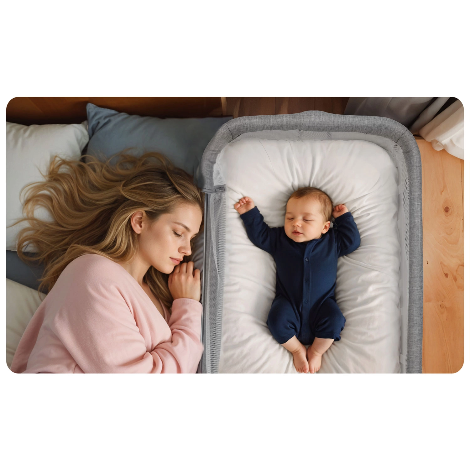 Mrežasti paneli zagotavljajo odlično kroženje zraka in omogočajo staršem, da imajo dojenčka ves čas na očeh – mirnejši spanec za otroka in za vas.