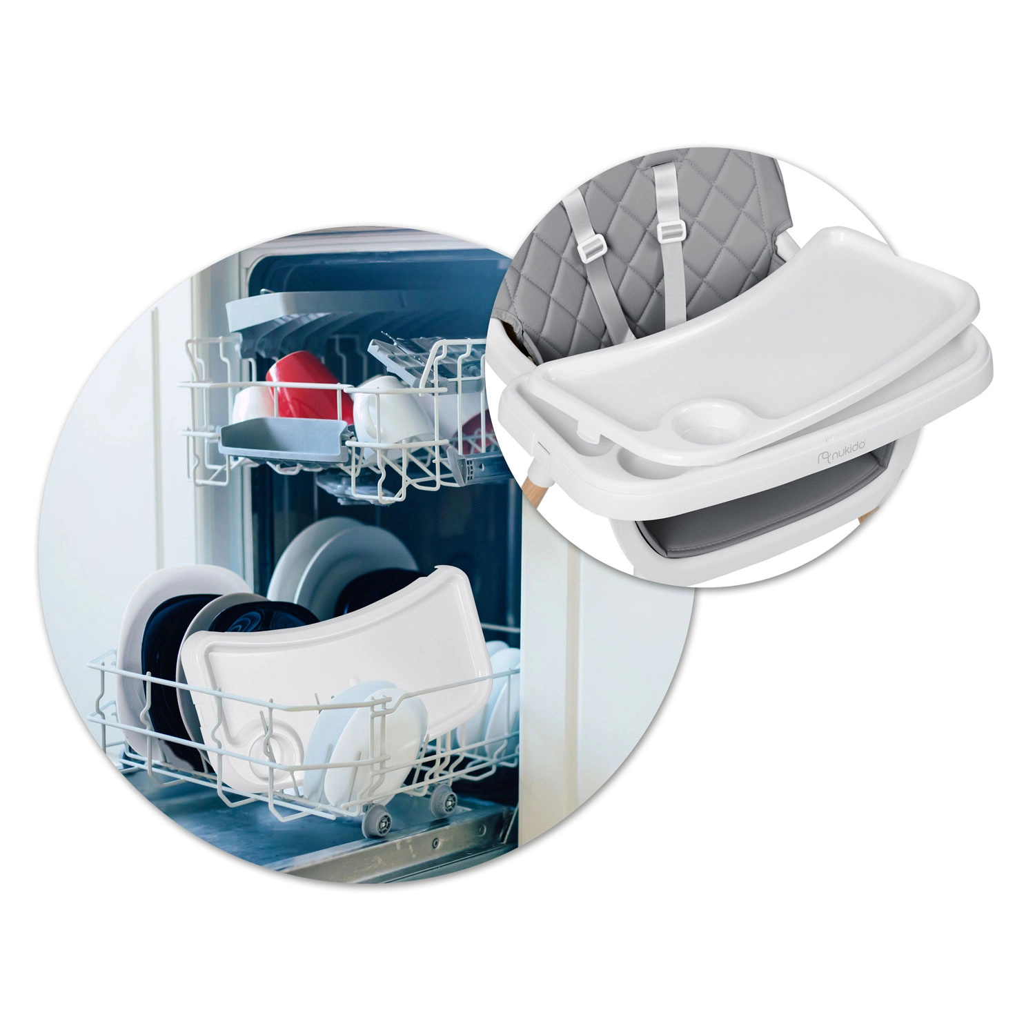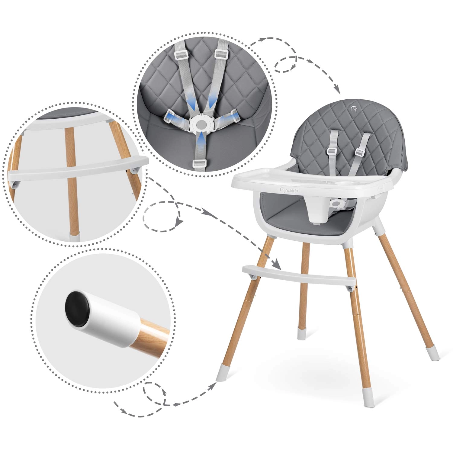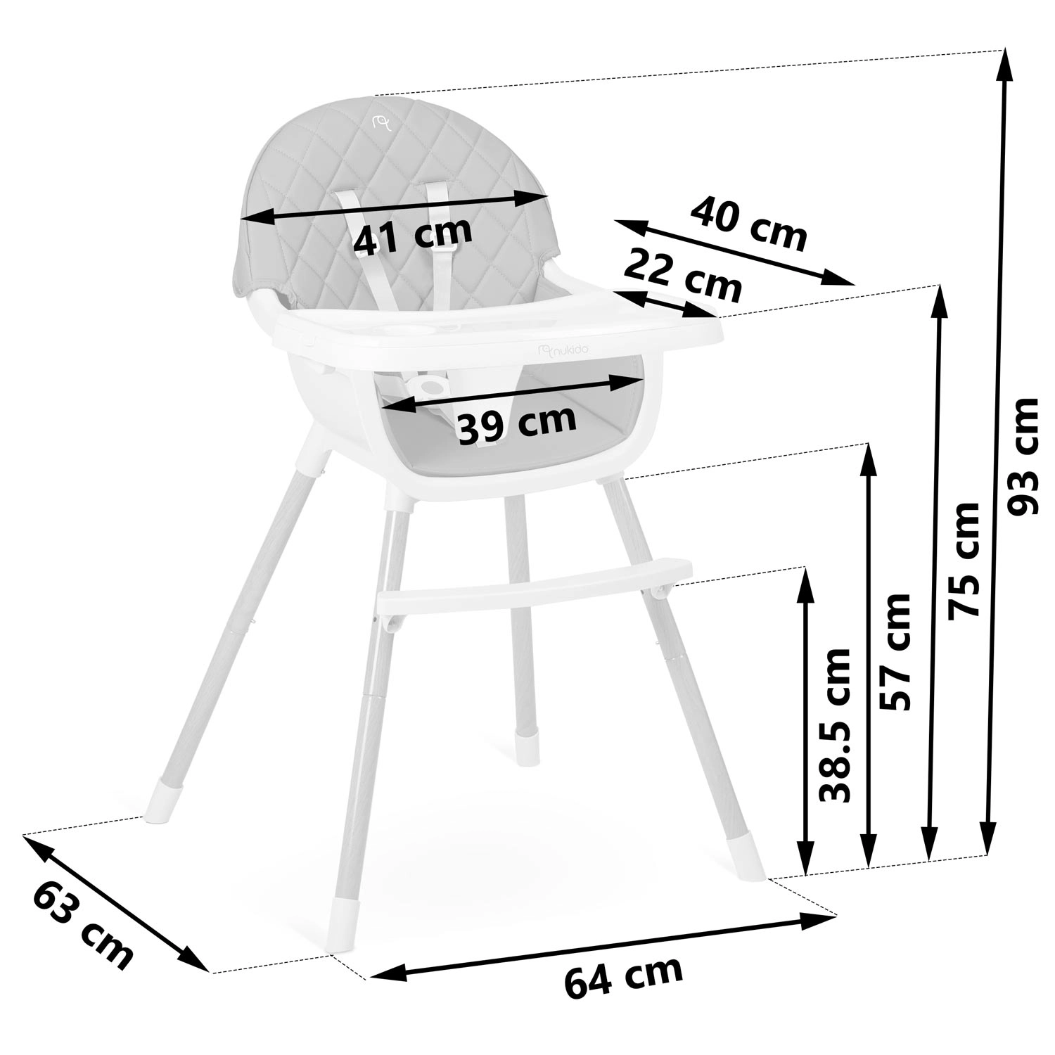 Praktični jedilni stolček NUKIDO Lilo 3v1 v elegantni sivi barvi združuje udobje, varnost in enostavno vzdrževanje. Ponuja nastavljiv in odstranljiv pladenj z dvignjenimi robovi, materiale, ki jih je lahko očistiti ter stabilne noge s protidrsno obdelavo. Zaradi 5-točkovnega varnostnega pasu in skladnosti z normo EN 14988 je odlična izbira za hranjenje, igro in učenje otrok od 6 mesecev do 15 kg.