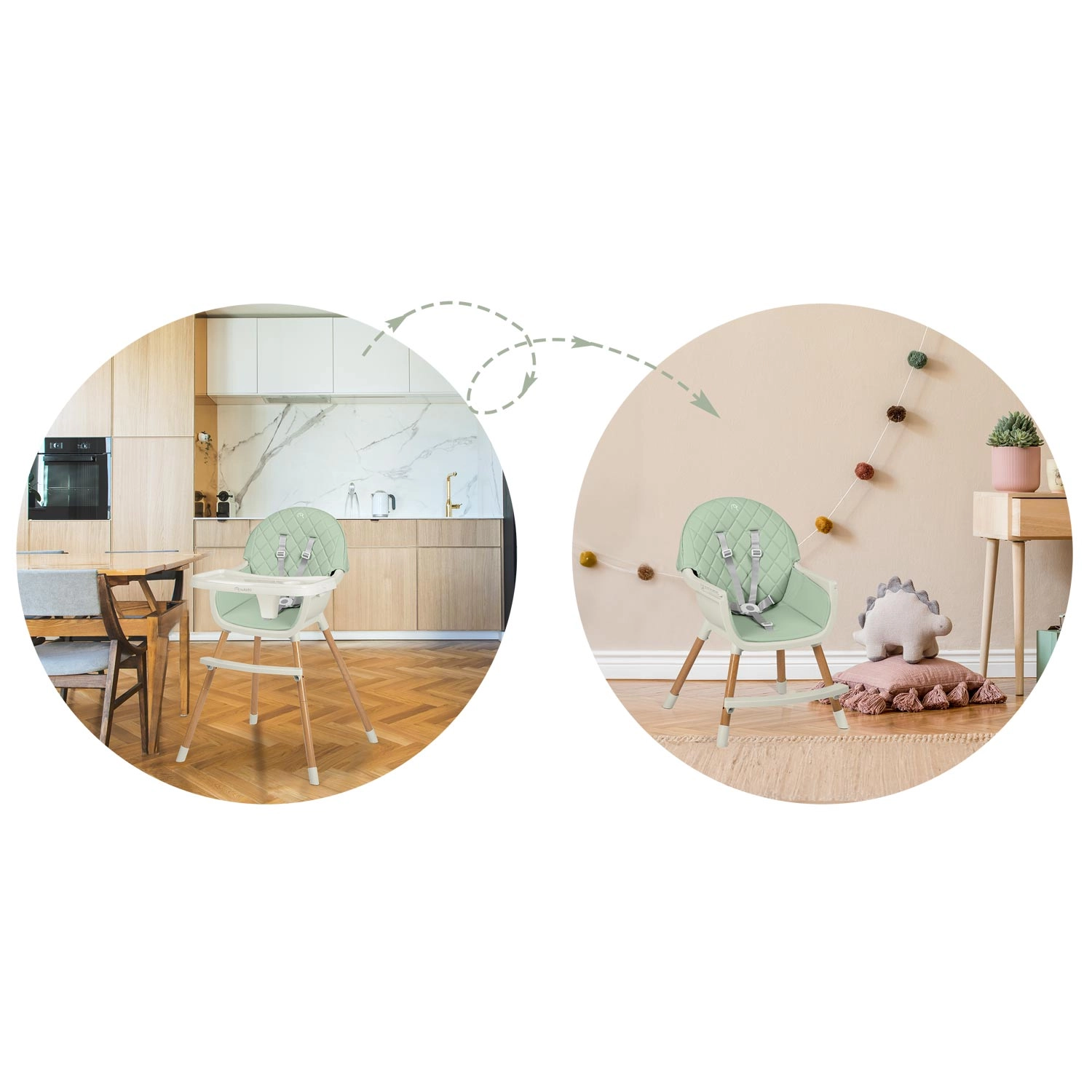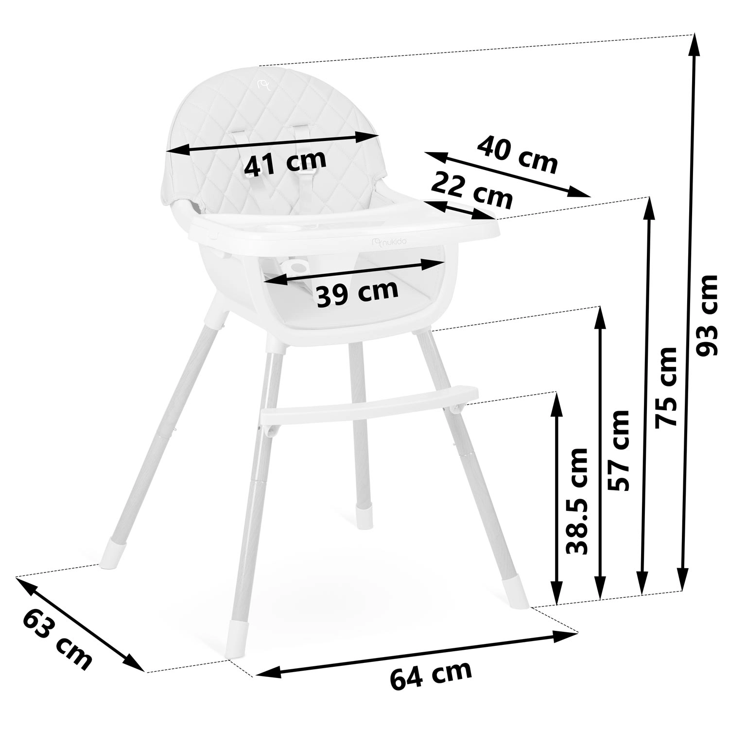 NUKIDO Lilo je vsestranski in stabilen jedilni stolček, ki raste z vašim otrokom. Zahvaljujoč sistemu 3v1 ga zlahka prilagodite različnim situacijam – od visokega stolčka pri mizi do nižjega stola za malčka. Udobno oblazinjenje je enostavno za čiščenje in ne vpija nečistoč, zato je pospravljanje po obroku hitro opravljeno.