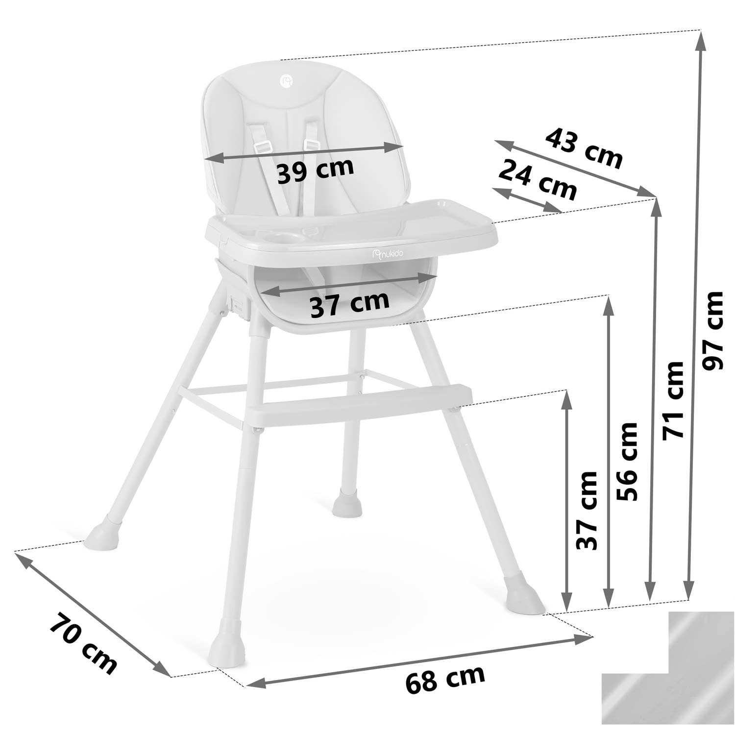 Praktičen in stilski otroški stolček za hranjenje NUKIDO Tilo 3v1 raste z vašim otrokom – od prvih kašic do samostojnega obedovanja in igre. Ponuja nastavljiv in snemljiv pladenj z dvignjenimi robovi in vložkom, materiale, ki jih je enostavno čistiti, 5-točkovni varnostni pas ter stabilne noge z nedrsečimi zaključki. Idealno za hranjenje, risanje in branje – varno, udobno in čisto v hipu.