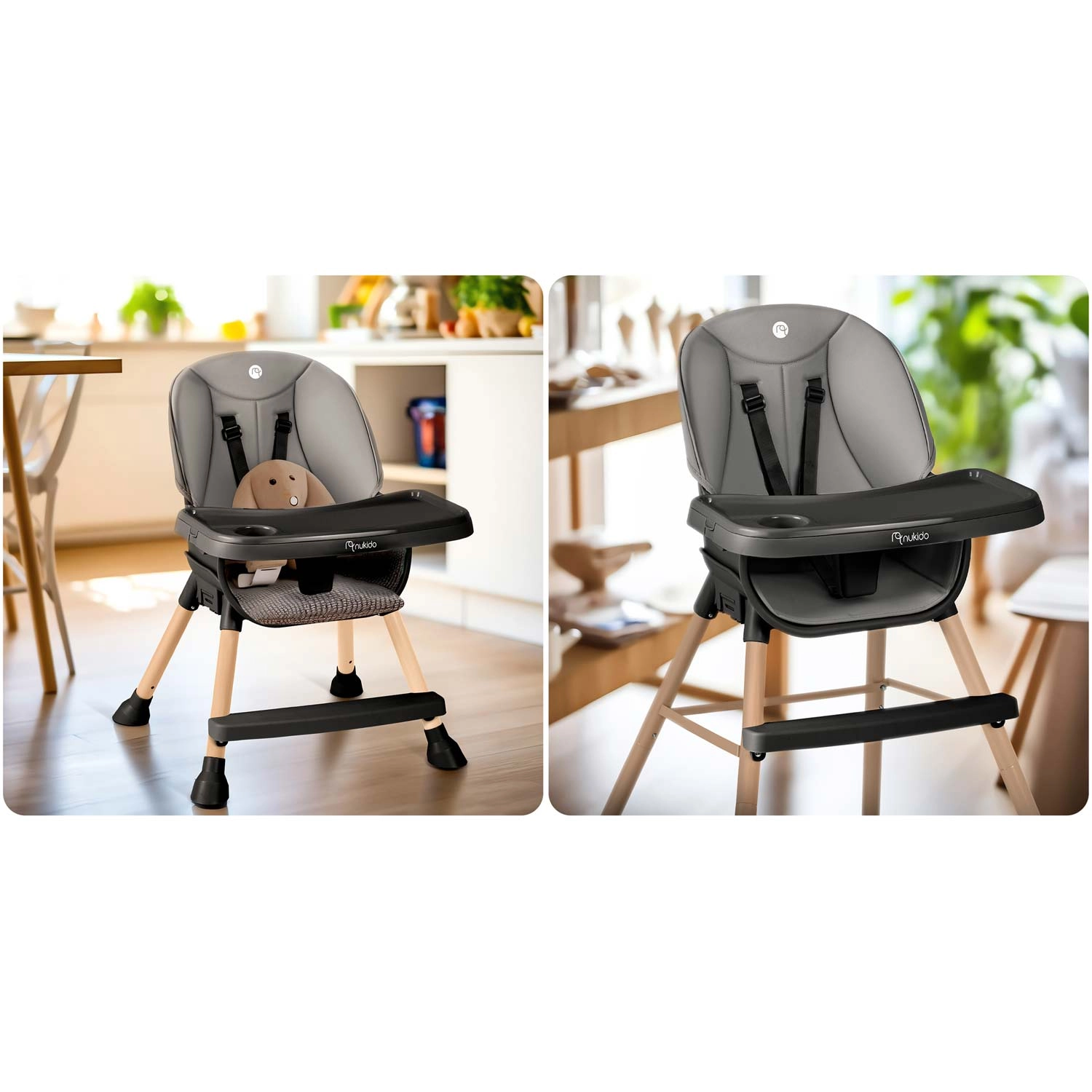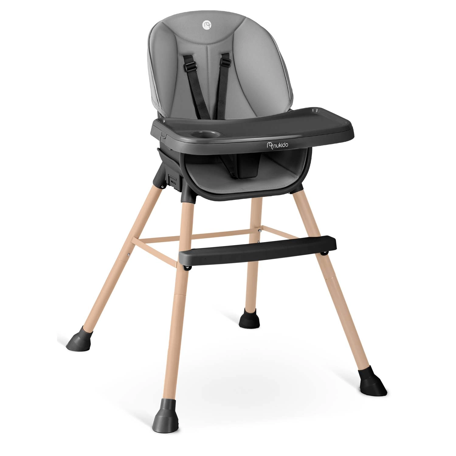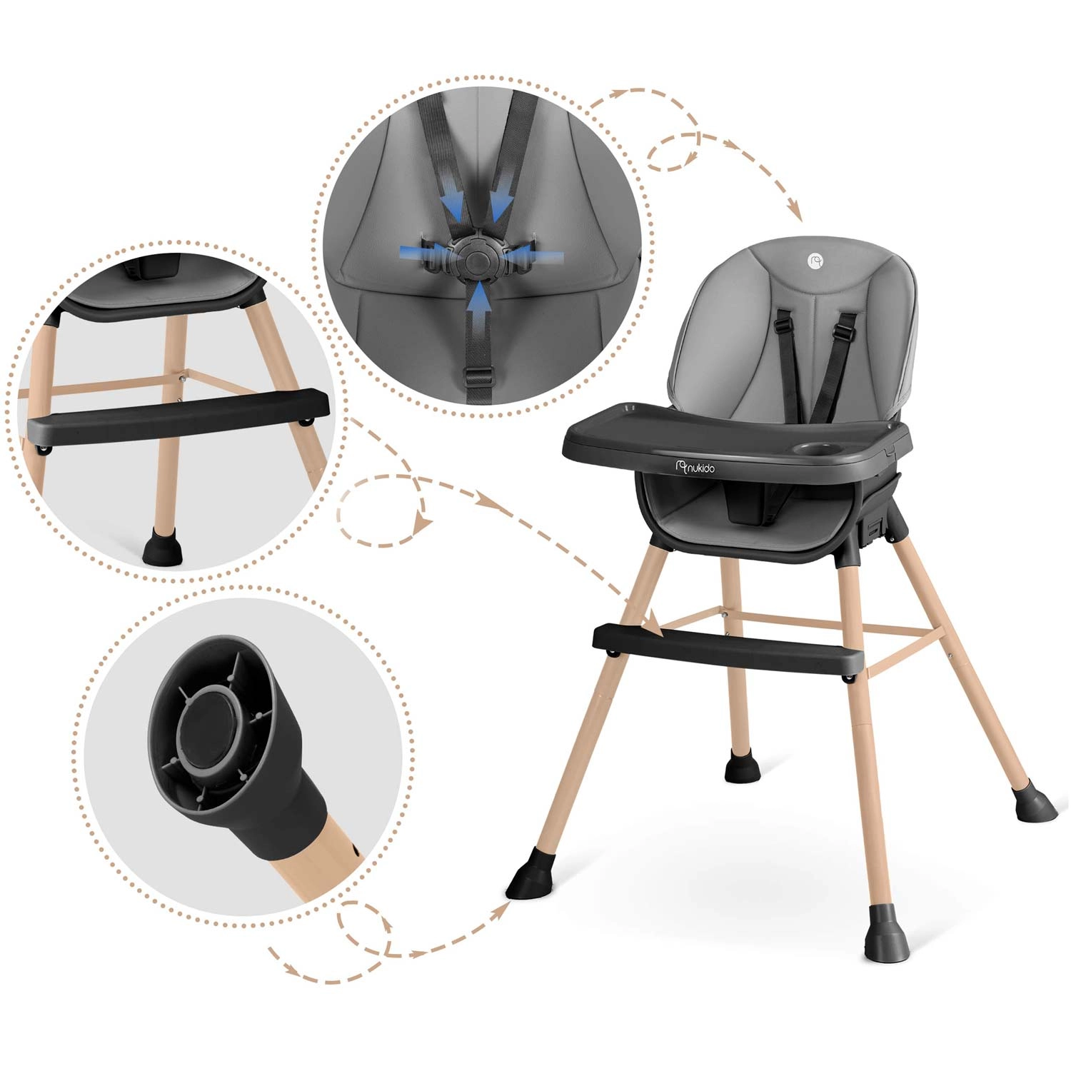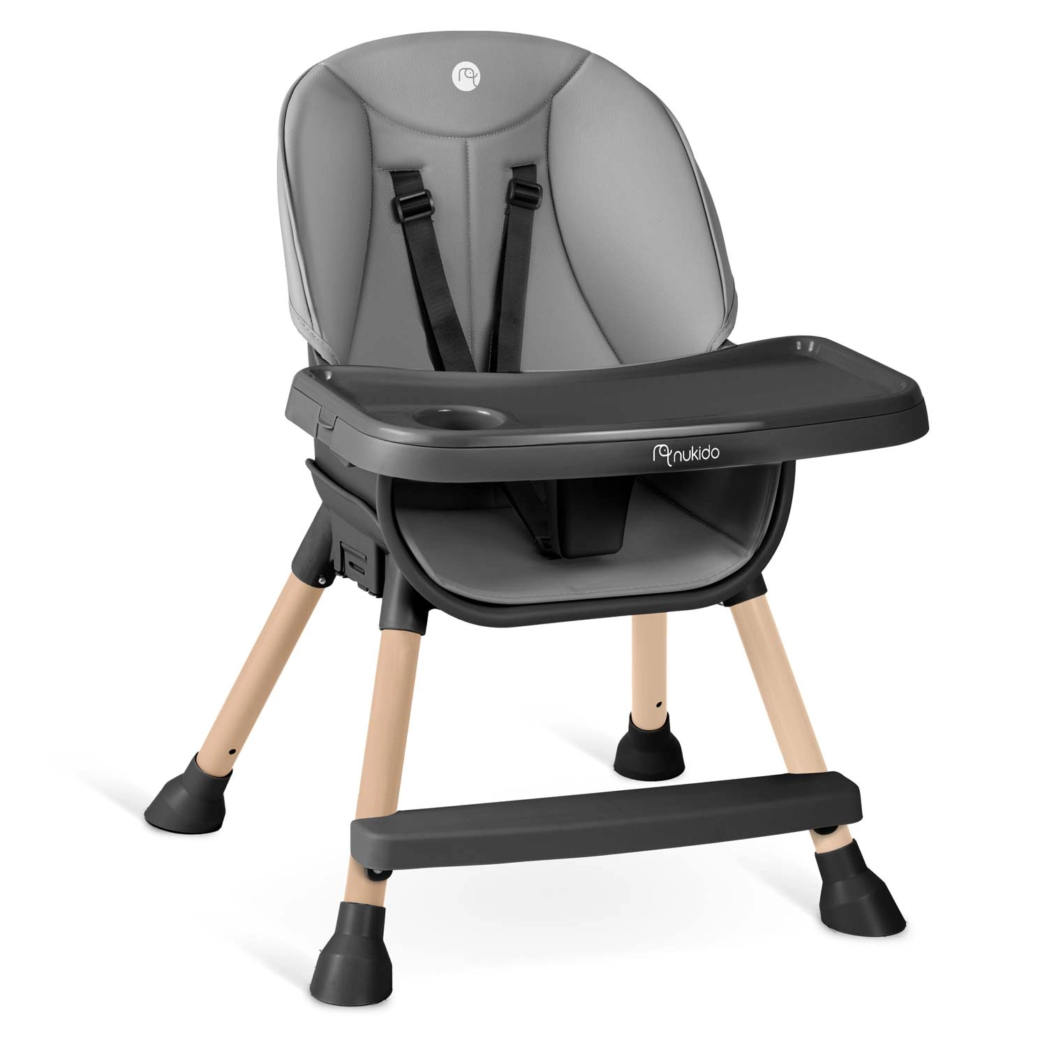 NUKIDO Tilo je vsestranski otroški stolček 3v1, ki ga zlahka prilagodite trenutnim potrebam: kot visok stolček za hranjenje, nizko sedišče z pladnjem ali samostojen otroški stolček za igro. Ergonomično oblikovan sedež podpira pravilno držo telesa, medtem ko robustne noge z videzom lesa in nedrsečimi kapicami zagotavljajo trdno stabilnost na kateri koli podlagi.