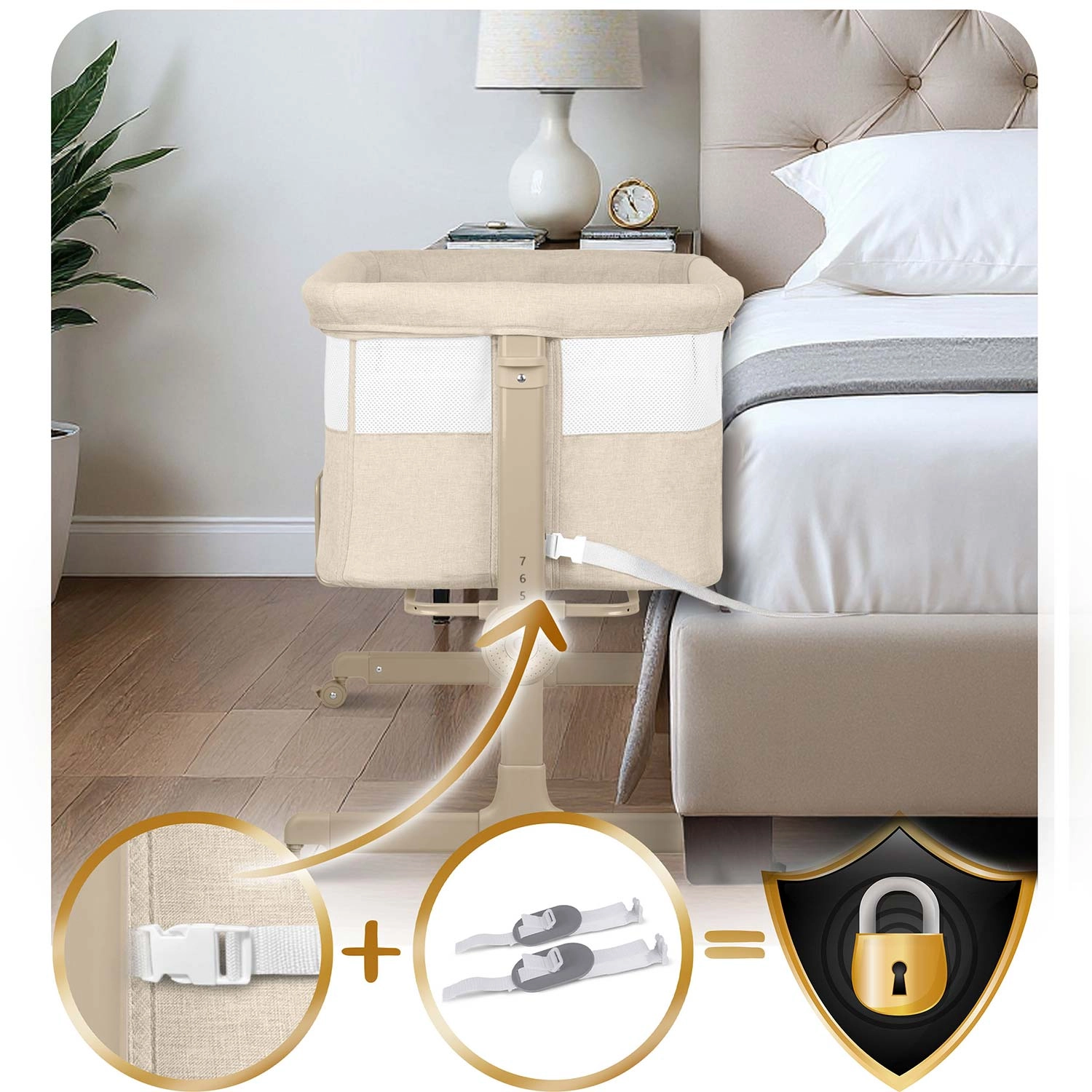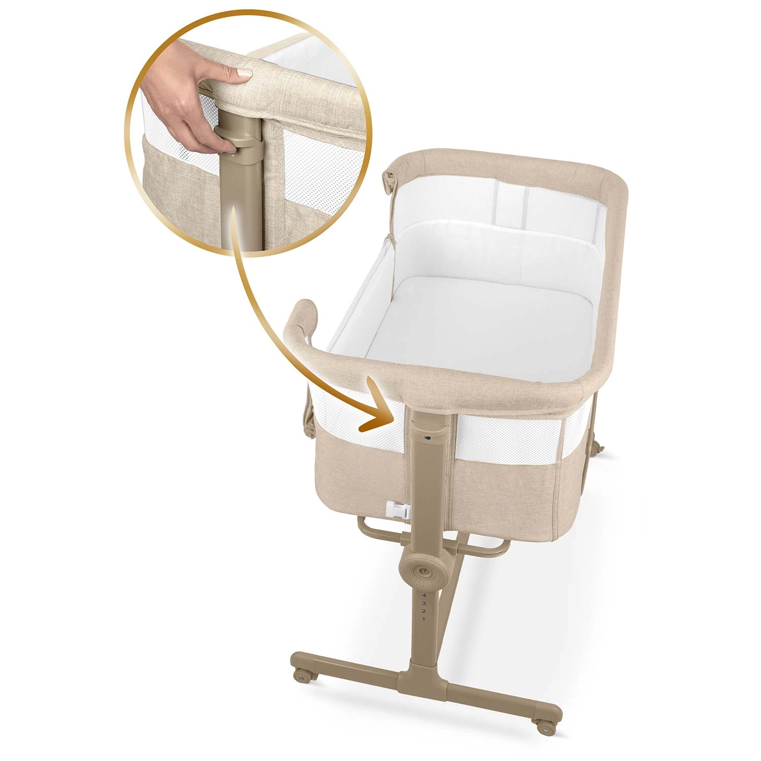 Obe strani je mogoče nastaviti ločeno. Višino enostavno poravnate s posteljo staršev ali ustvarite rahel naklon za večje udobje otroka.