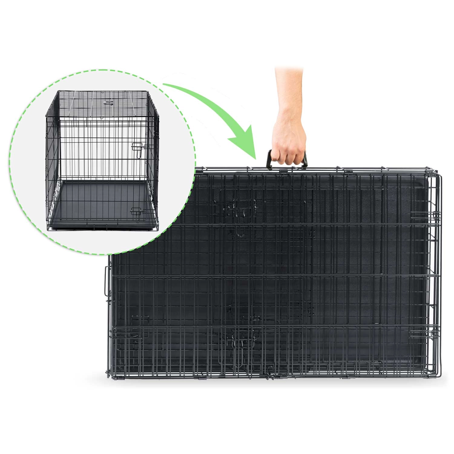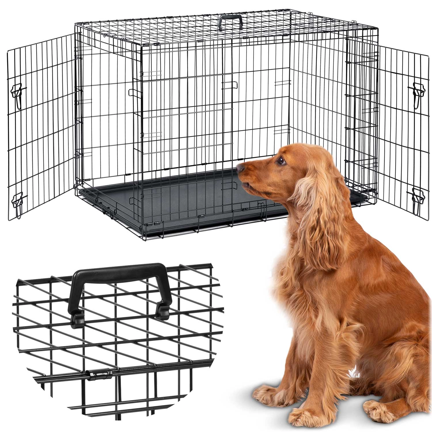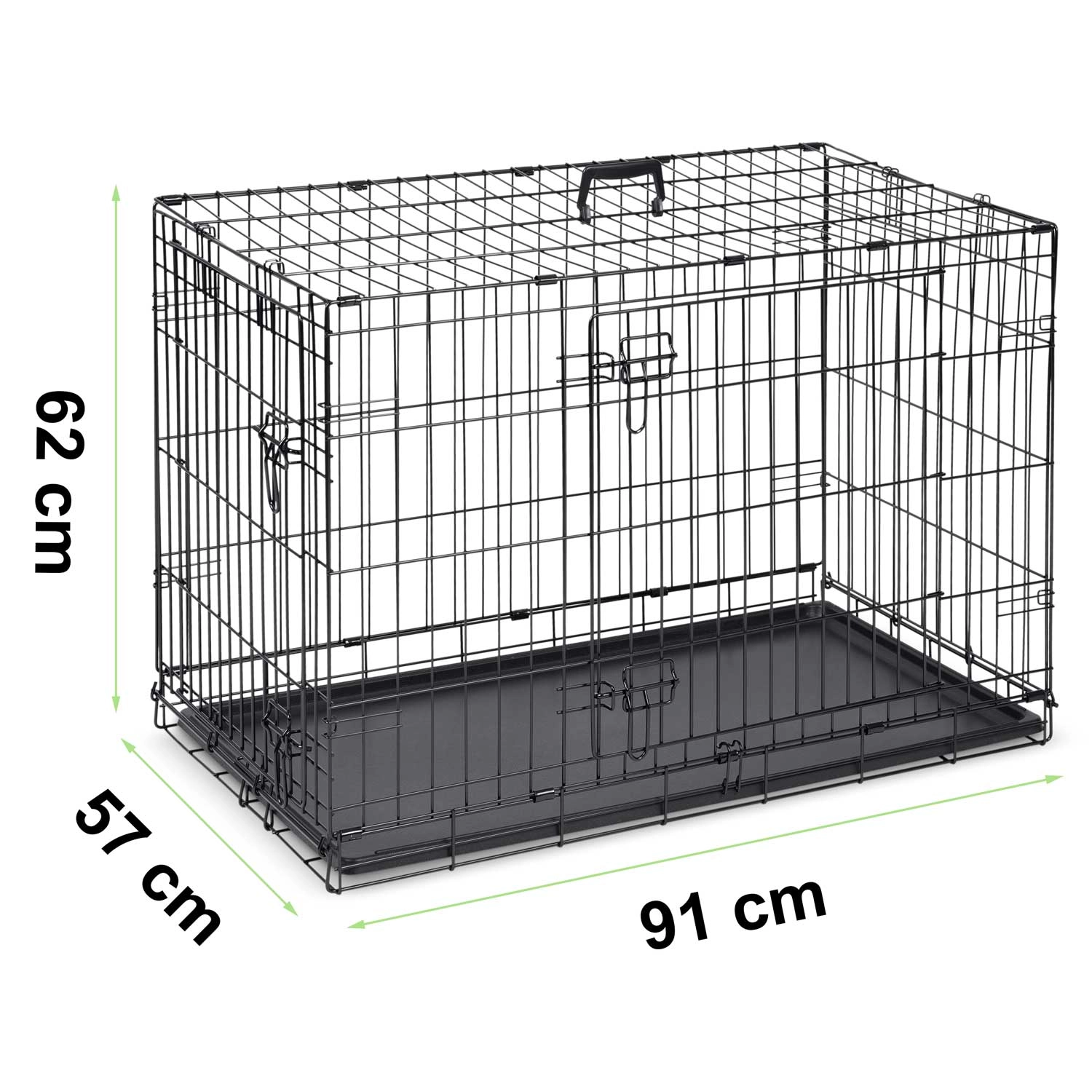 Praktična in trpežna kovinska kletka za pse v velikosti M vašemu ljubljenčku nudi varno in udobno mesto doma in na poti. Zaradi dvojih vrat (sprednjih in stranskih), lahko čistljive izvlečne posodice ter hitrega zlaganja v raven kovček z ročajem je idealna za vsakodnevno uporabo, trening in prevoz v avtomobilu.