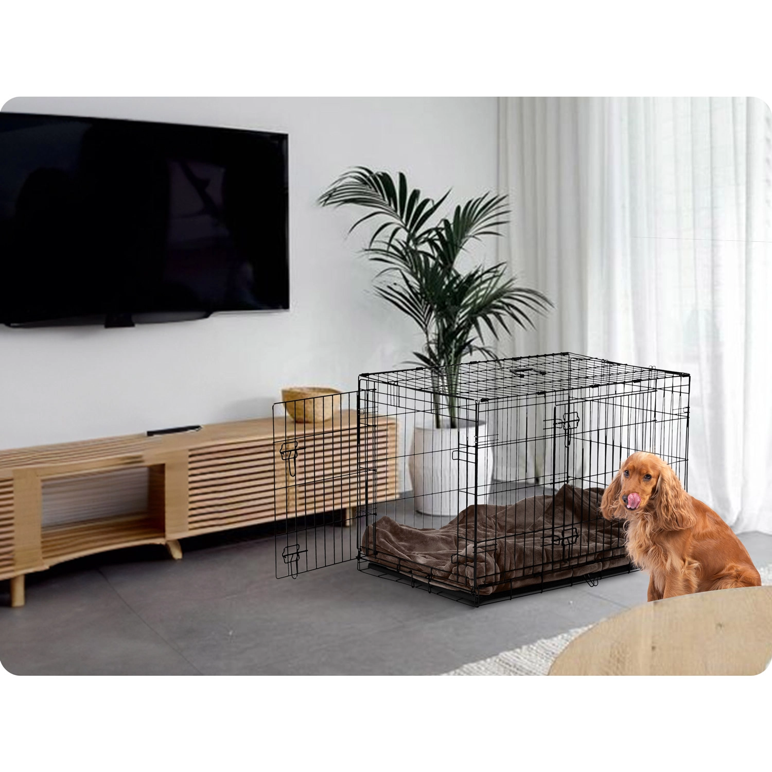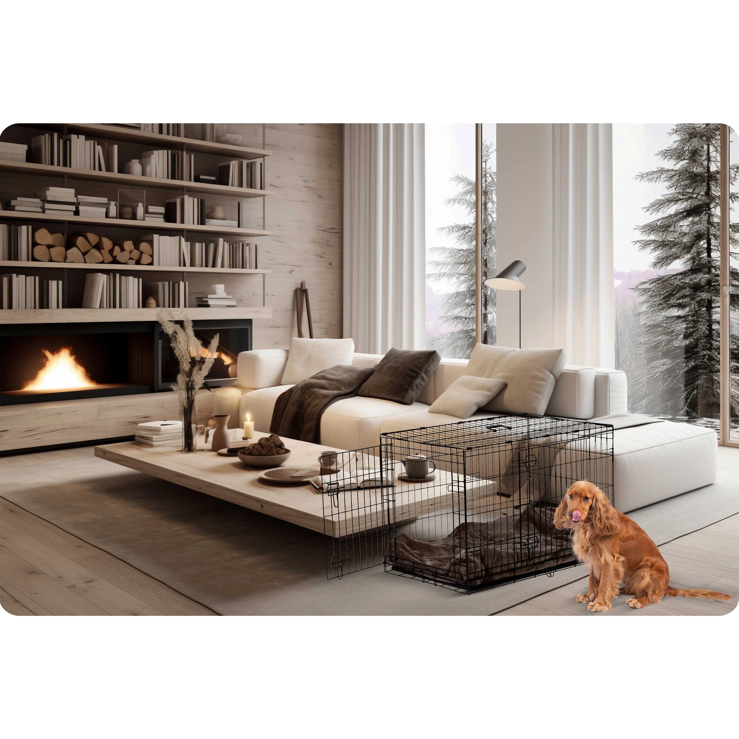 Sprednji in stranski vstop z varnimi zapirali omogočata udobno vstopanje psa ter boljše prilagajanje kletke prostoru v vašem domu.