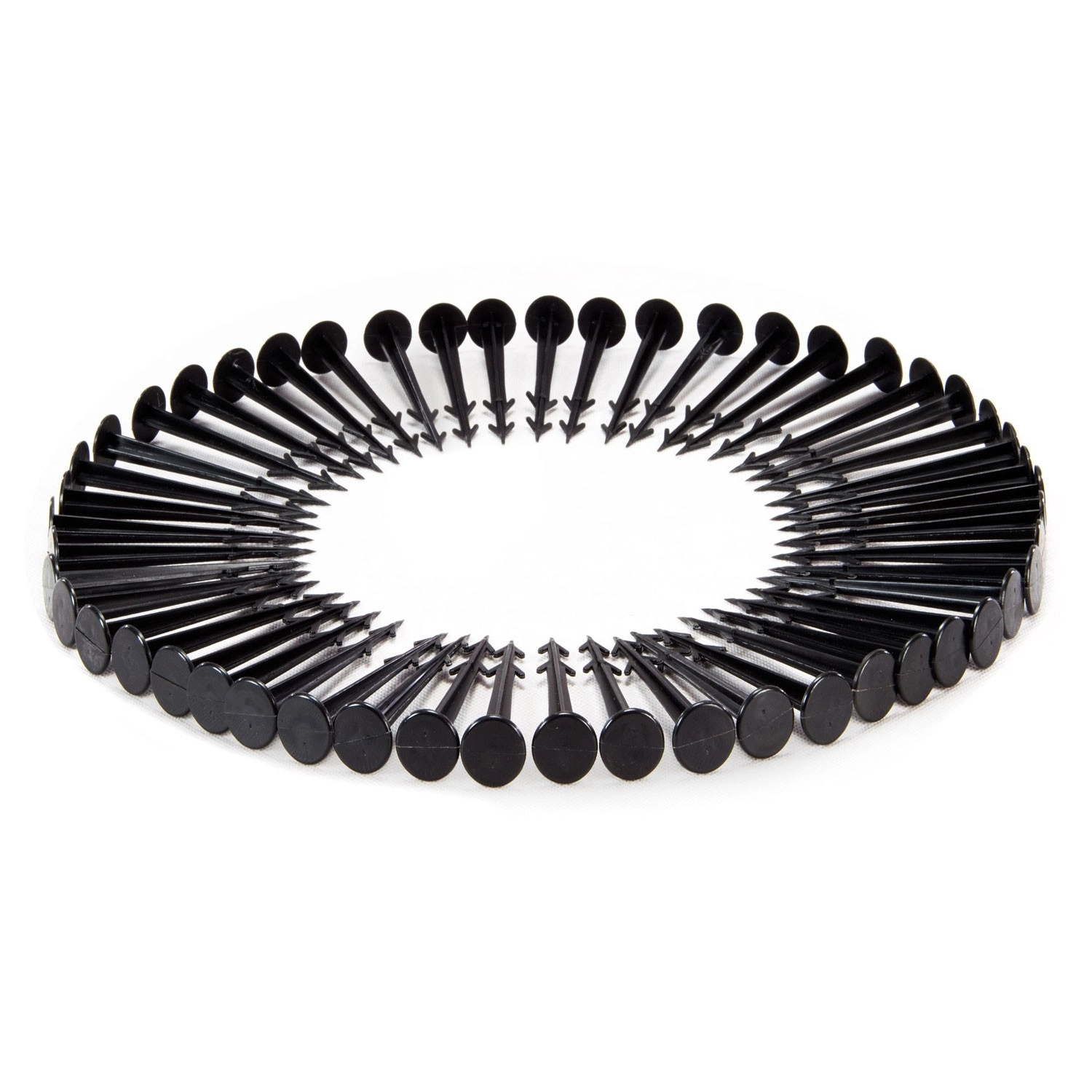 Komplet vsebuje 50 plastičnih količkov za hitro in trdno pritrjevanje v tla. Črna površina pomaga absorbirati sončno toploto, s čimer povišuje temperaturo tal in podpira močnejši koreninski sistem ter hitrejši začetek rasti. Primerno za gojenje sadja, zelenjave in okrasnih rastlin.