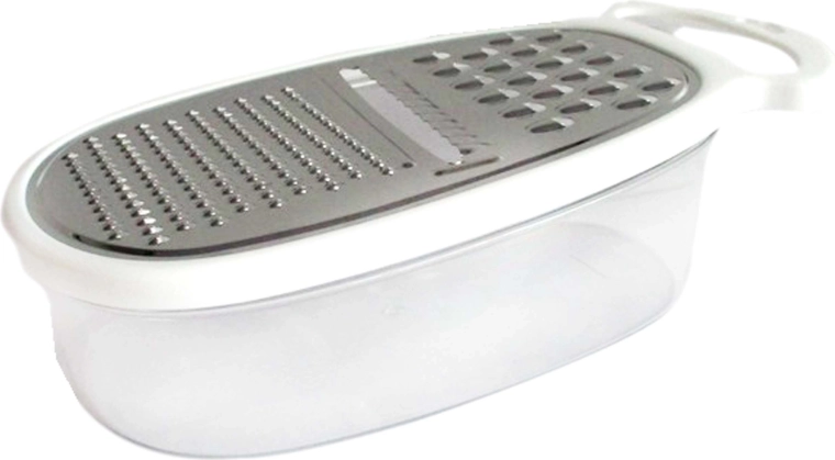 Univerzalno ribeženje iz nerjavnega jekla z belim plastičnim ročajem je zanesljiv pomočnik za vsakodnevno kuhanje. Stabilna zasnova in ostre površine zagotavljajo hitro in enakomerno ribanje brez napora.