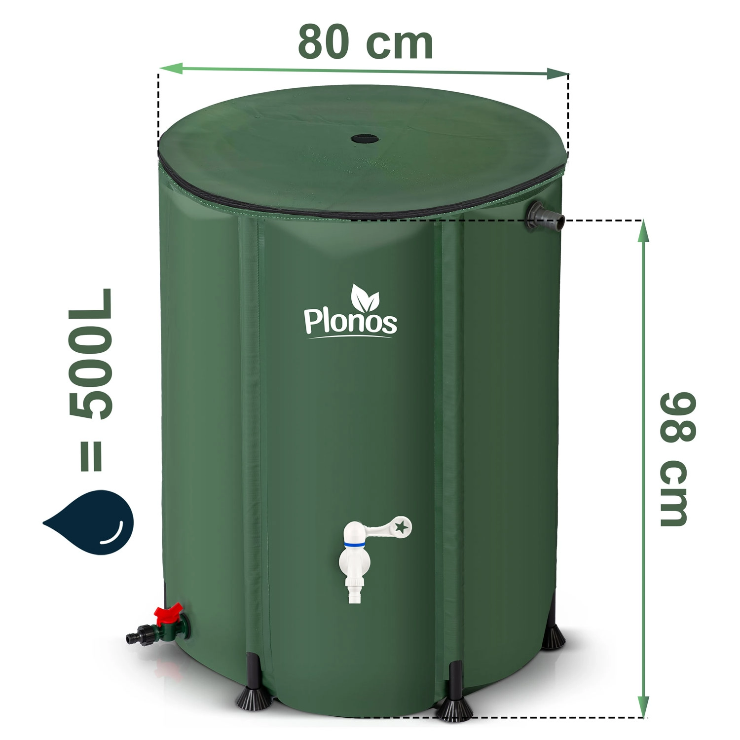 Shranjujte deževnico za svoj vrtni raj s praktičnim sodom Plonos s prostornino 500 l. Zahvaljujoč čvrstemu ogrodju, odporni PVC oblogi in pametnim funkcijam, kot so pipa z ročico on/off, spodnji izpustni ventil in možnost priklopa vrtne cevi, je uporaba preprosta in udobna. Filtrirno sito ohranja vodo čisto, pokrivalo odporno na UV in vremenske vplive pa zagotavlja dolgo življenjsko dobo. Idealna rešitev za varčevanje z vodo in okolju prijazno zalivanje na vrtu ali vikendu.