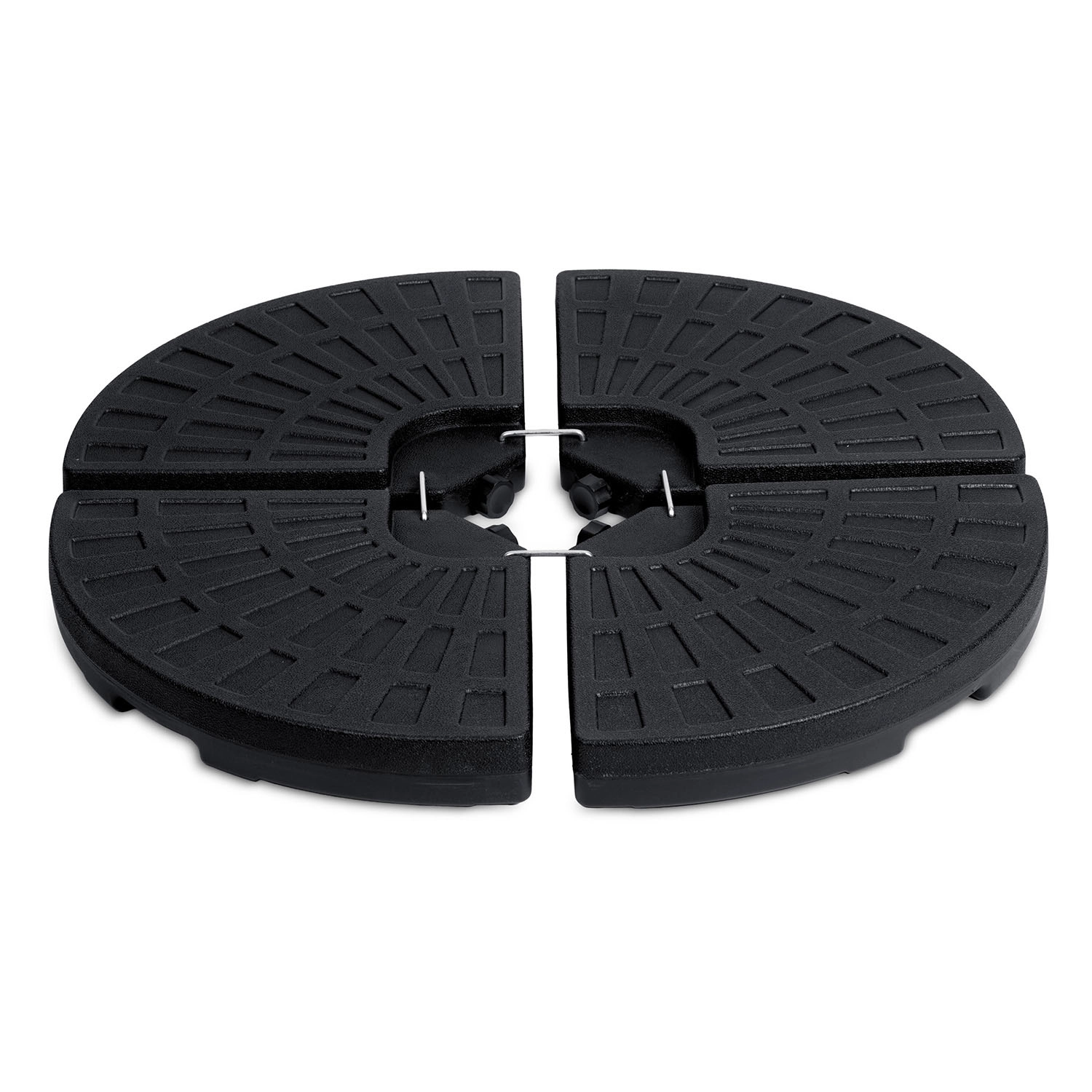 Ta štiridelna obtežilna osnova je zasnovana za varno in dolgotrajno sidranje vrtnih in bočnih senčnikov. Vsak segment je izdelan iz čvrstega HDPE, odpornega proti mehanski obrabi in vremenskim vplivom. Stojalo se polni s peskom ali vodo, zato je pri prevozu lahko, po namestitvi pa zagotavlja maksimalno stabilnost.