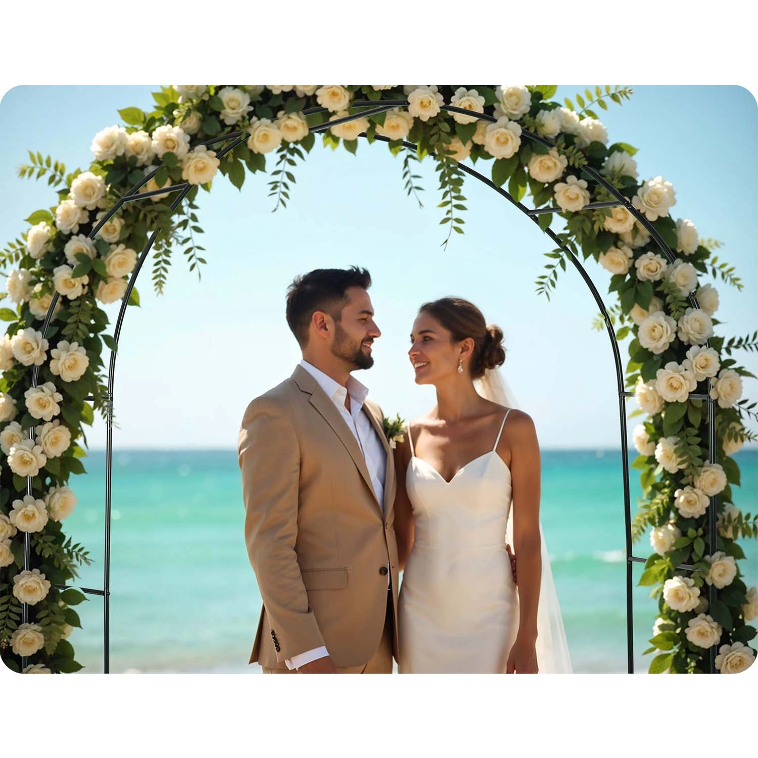 V paketu so sidra za varno pritrditev in montažni vijaki. Intuitivno sestavljanje opravite hitro in brez posebnih orodij – kmalu boste ustvarili učinkovit prehod ali romantično foto ozadje za poroke in praznovanja.