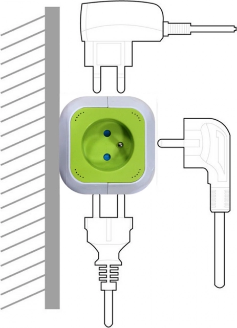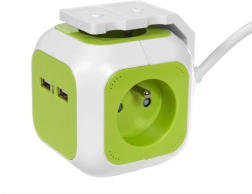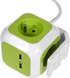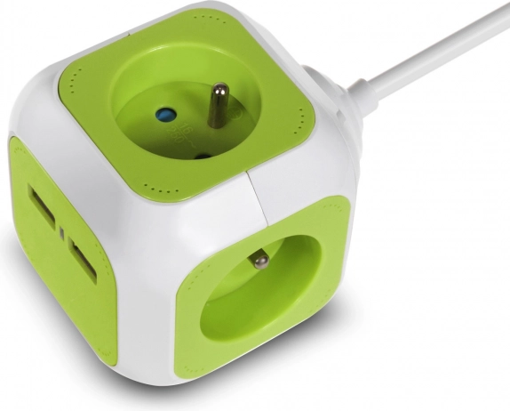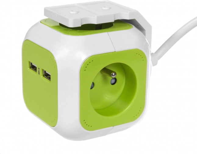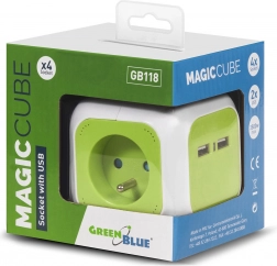 Razdelilnik GREENBLUE Magic Cube učinkovito poveča število razpoložljivih vtičnic in omogoča hkratno napajanje več naprav. Dva integrirana USB-ja zagotavljata hitro in udobno polnjenje telefona, tablice ali slušalk brez potrebe po ločenem polnilniku. Kompakten kubični dizajn prihrani prostor in preprečuje oviranje sosednjih vtičnic.