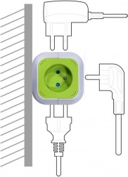 Kockasta oblika s 4 vtičnicami na različnih straneh prihrani prostor in omogoča priročno priklop tudi večjih vtikačev brez medsebojnega oviranja.