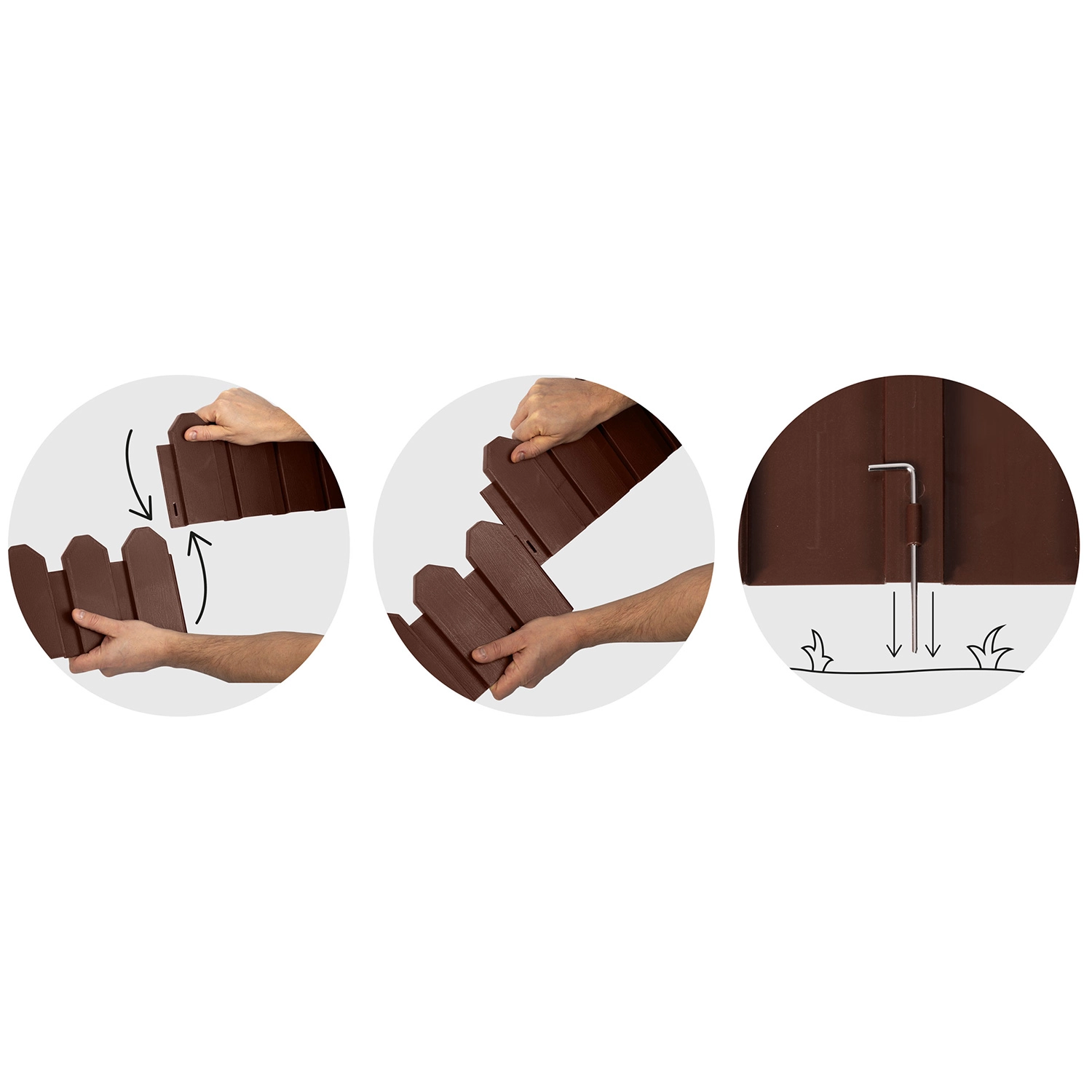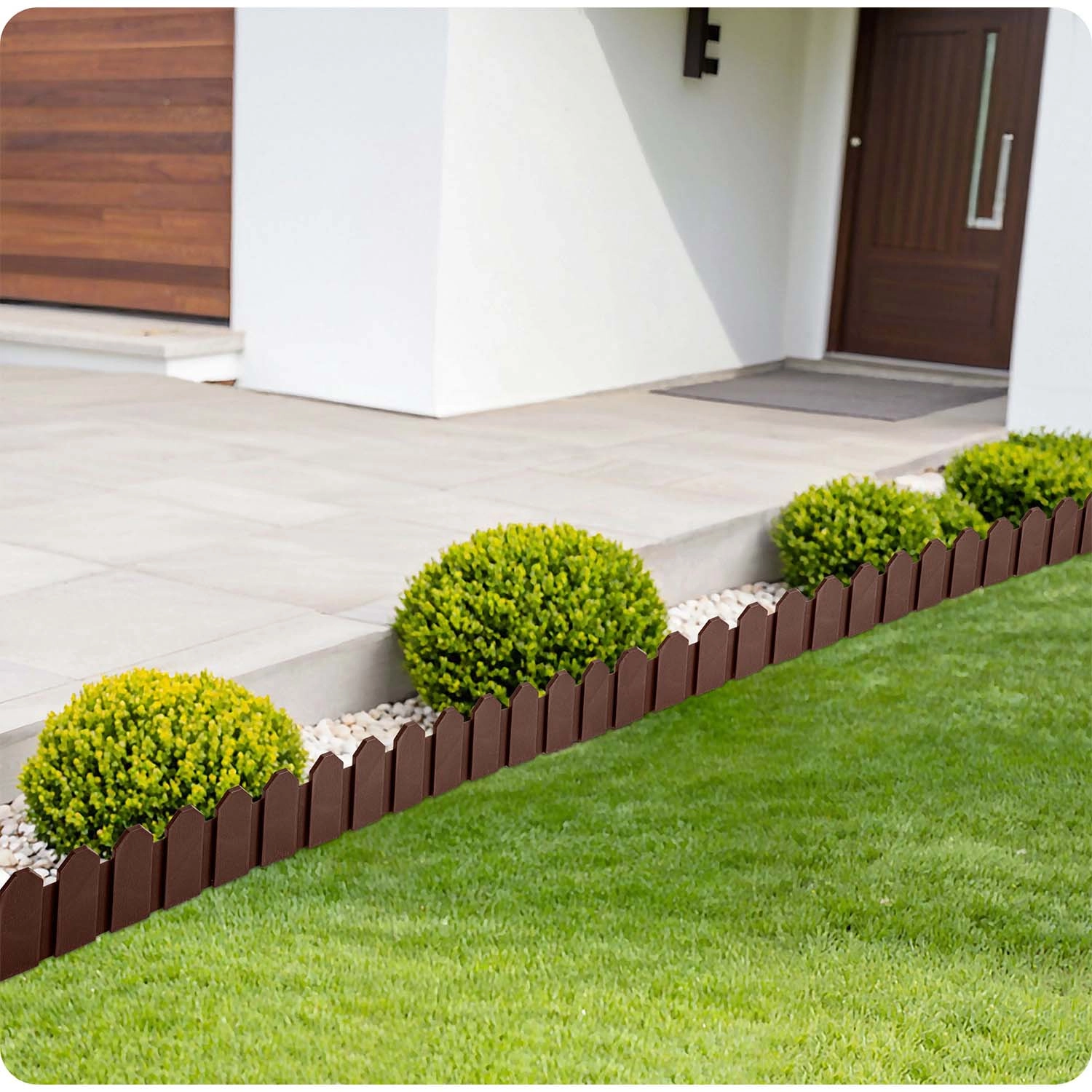 Modularni vrtni robnik Plonos dolžine 2,4 m v elegantni rjavi barvi ohranja gredice čiste, trato pa brez prodca in lubja. Izdelan je iz trpežnega PP materiala, je UV stabilen, odporen proti zmrzali in pripravljen za preprosto namestitev zahvaljujoč jeklenim sidrom v paketu. Enostavno povezovanje modulov omogoča ustvarjanje ravnih linij in krožnih oblik ter zaščito rastlin pred poškodovanji.