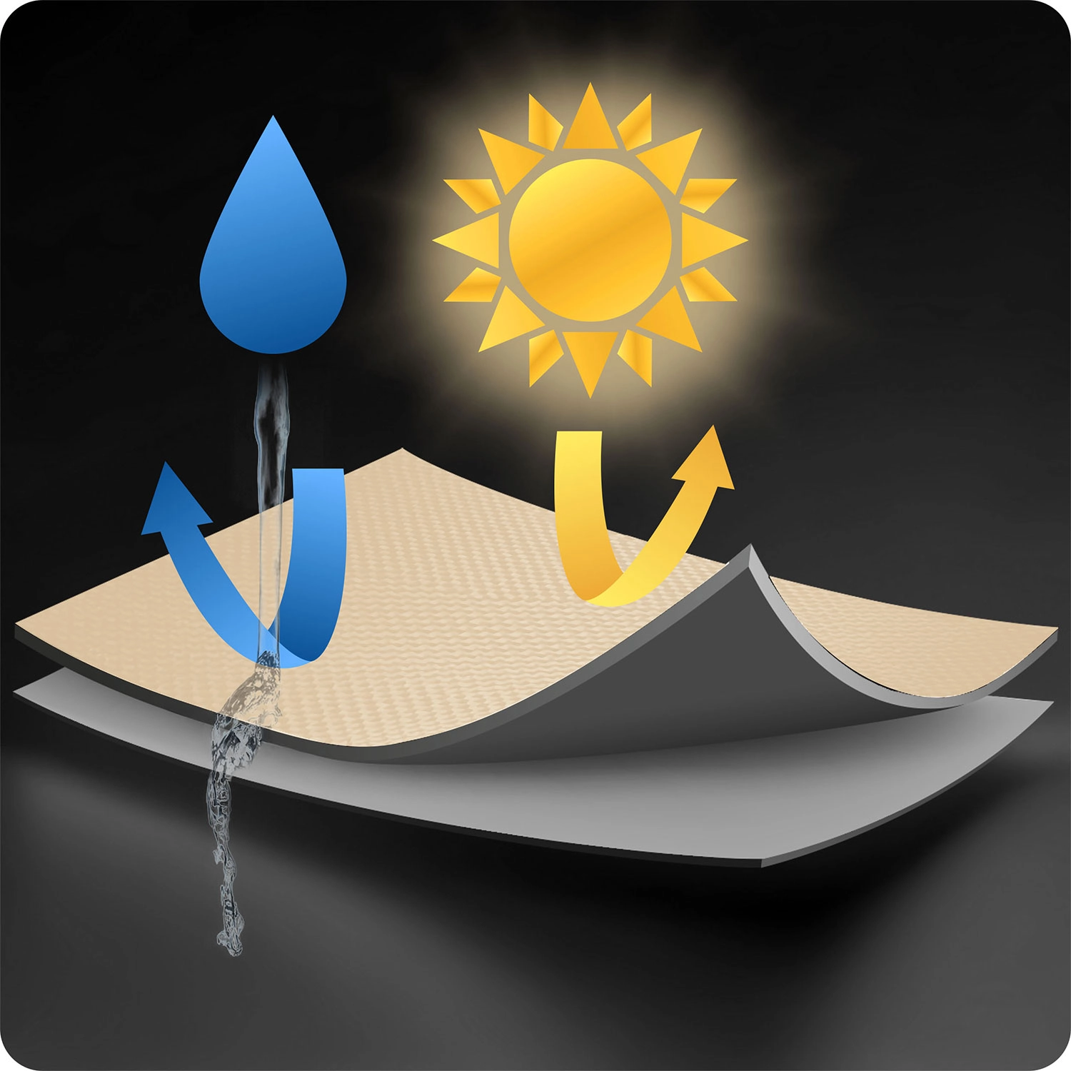 Praktična in stilska senčilna jadrovina s površino 12 m² zagotovi udobno senco točno tam, kjer jo potrebujete. Odporna polietilenska tkanina (180 g/m²) ščiti pred soncem in rahlim dežjem – kapljice po površini prosto polzijo, zato lahko zunanje druženje uživate tudi ob kratki plohi.