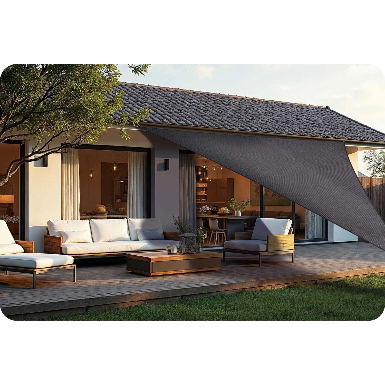 - Velika senca: približno 7 m² za udobno sedenje in sprostitev.