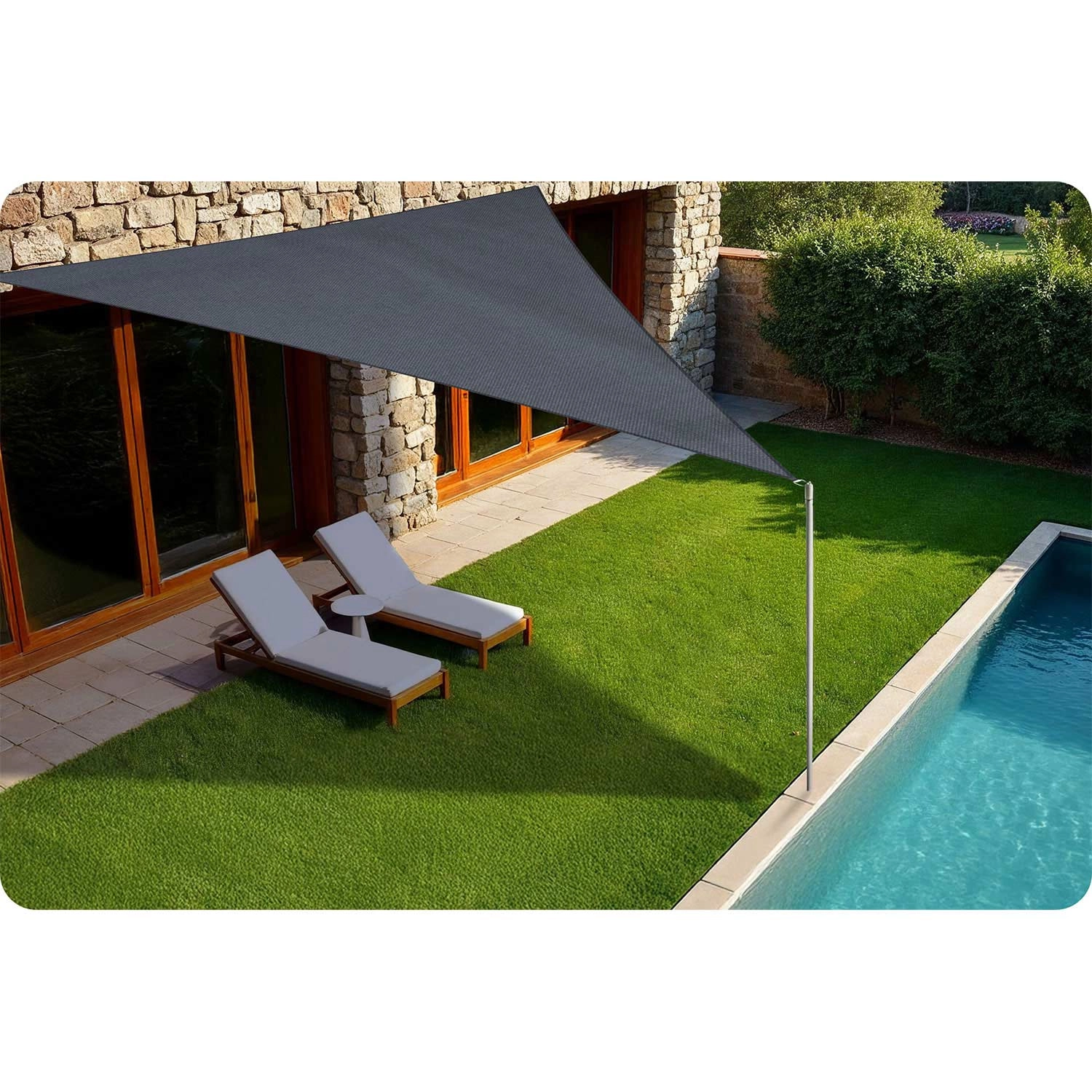 Trikotna oblika 400 × 400 × 400 cm ustvari do 7 m² sence ter zunanjemu prostoru doda moderen videz in udobje.