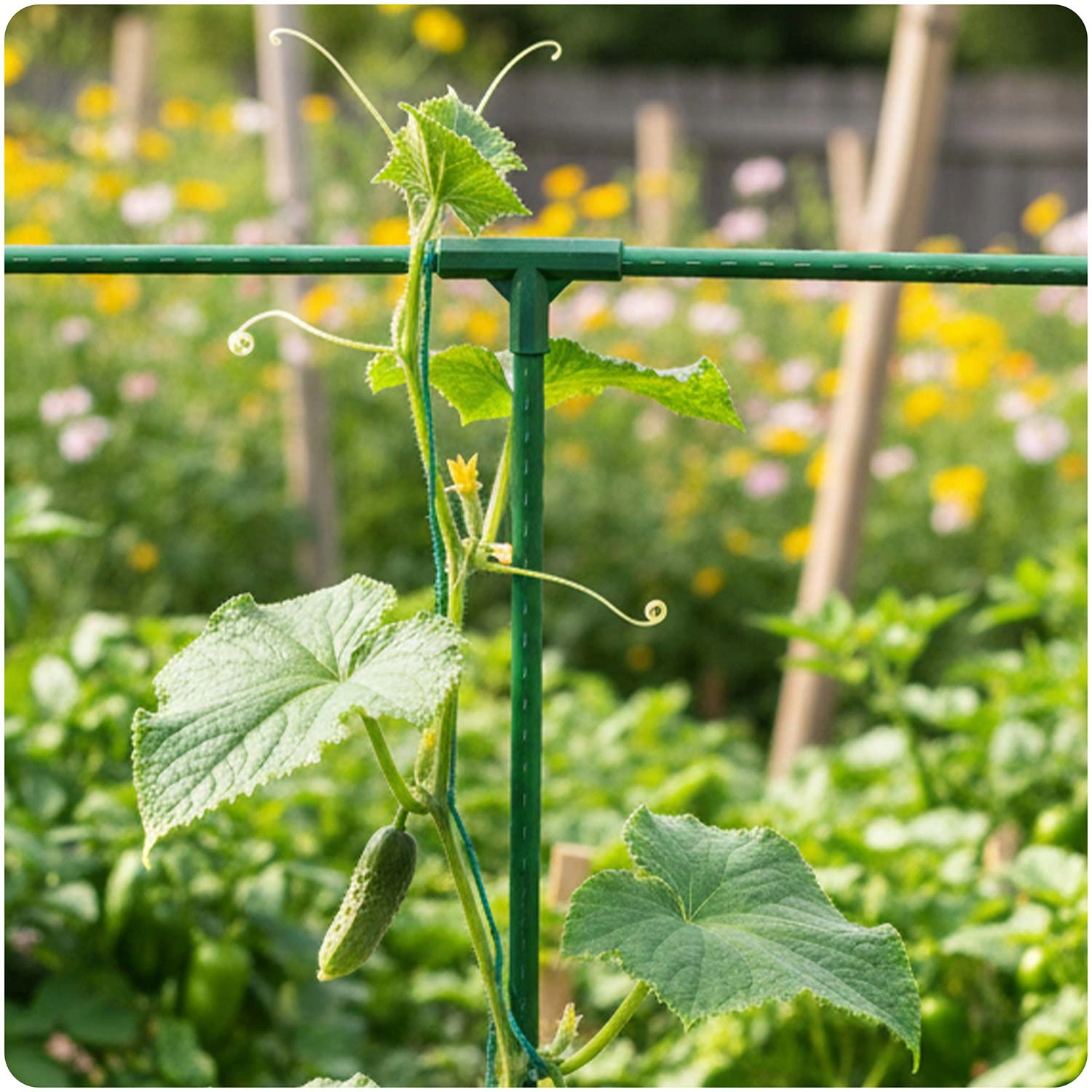 Ustvarite stabilne mreže in okvirje, ki bodo ohranjali rastline pokonci in plodove stran od tal. Idealno za zelenjavne gredice in rastlinjake.