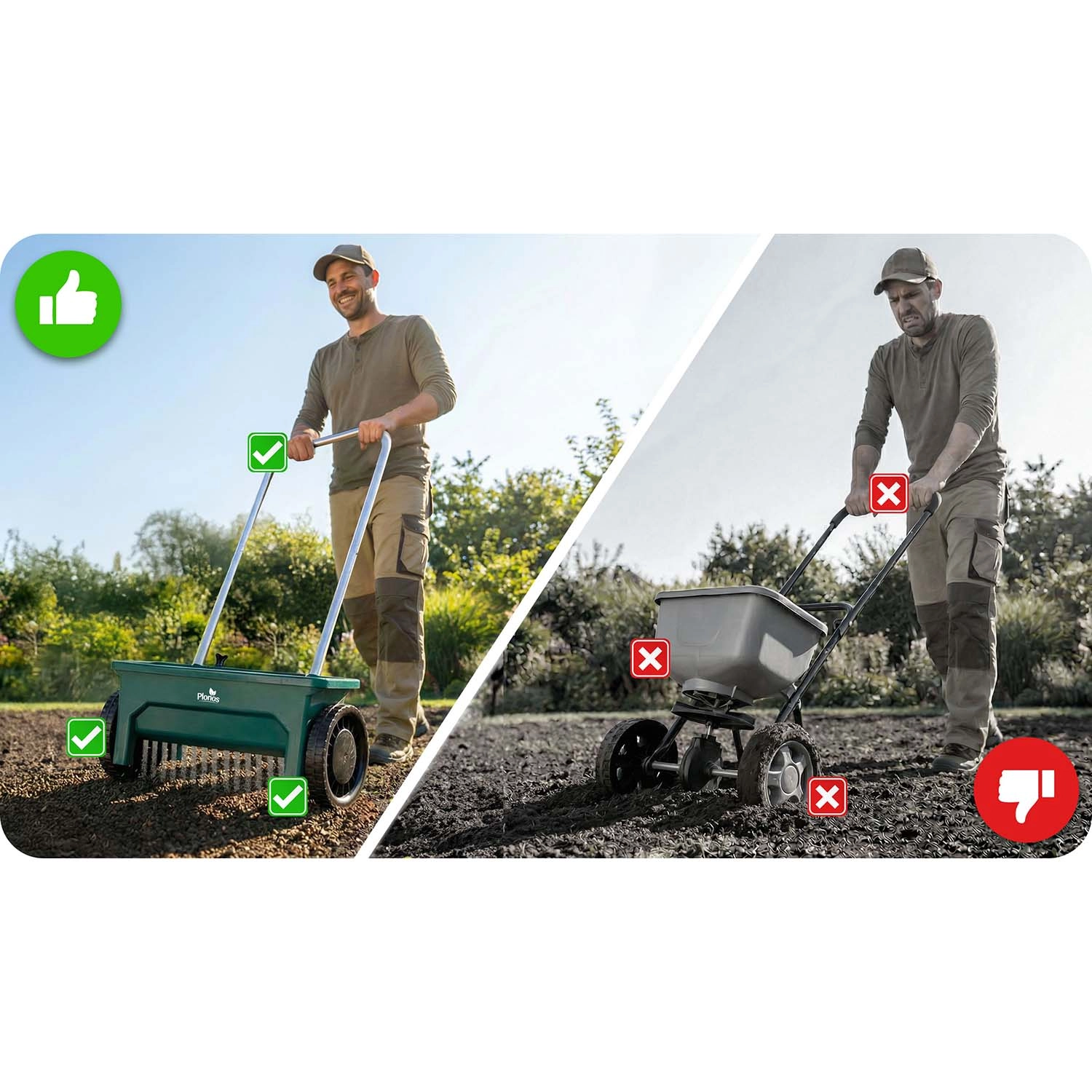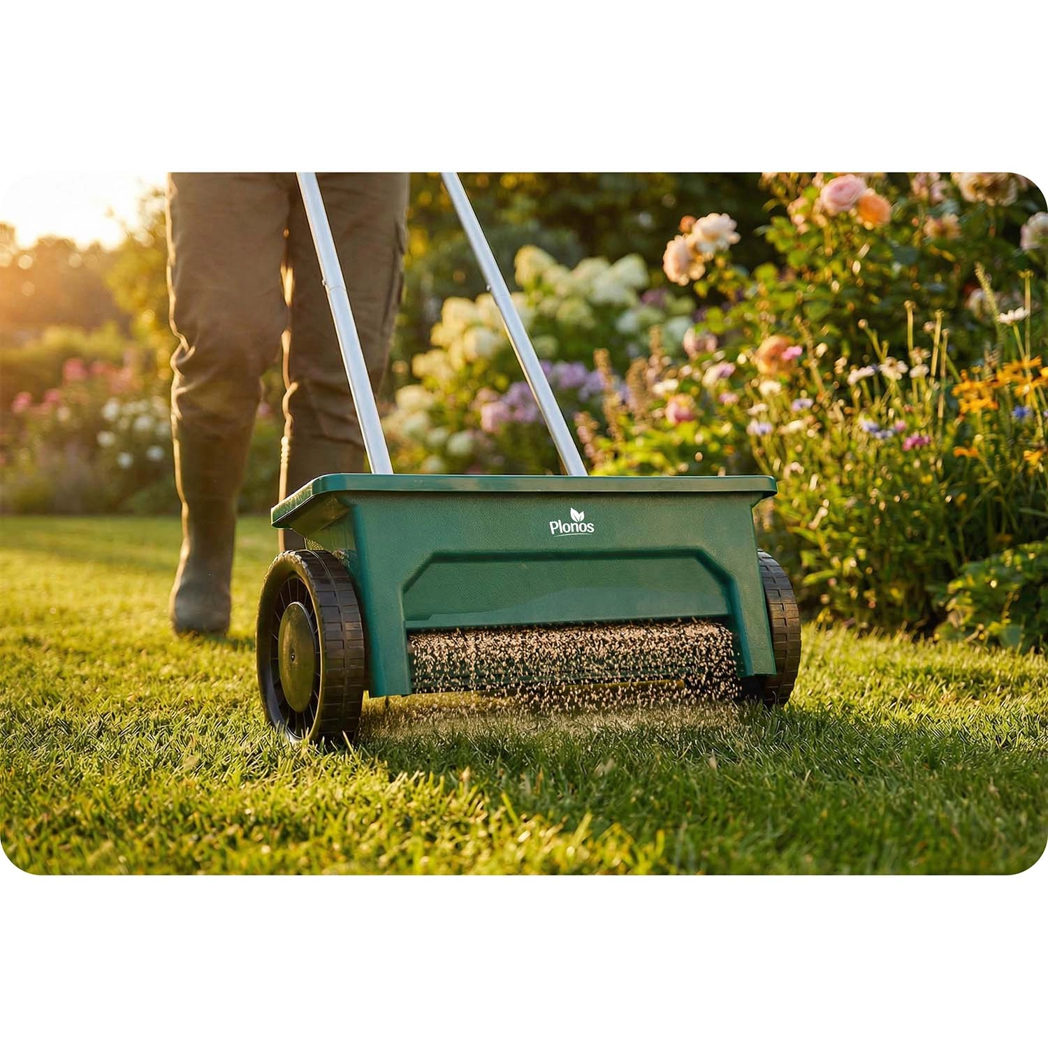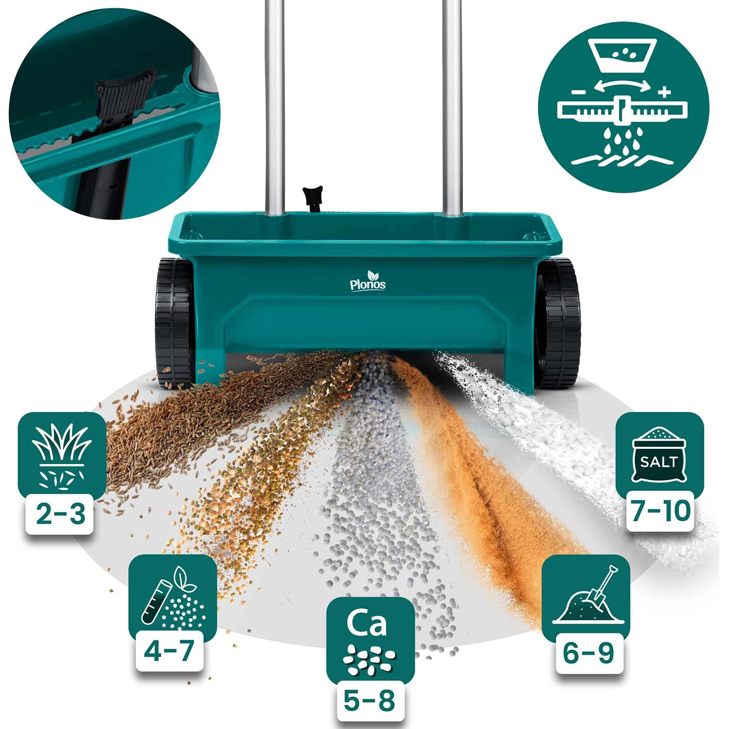 Univerzalni ročni trosilnik PLONOS s prostornino 12 l zagotavlja natančno in enakomerno raztros semen, gnojil, peska in posipne soli skozi vse leto. Zahvaljujoč 10-stopenjskemu uravnavanju pretoka, velikim kolesom in ergonomskemu ročaju boste delali hitro, udobno in brez zapravljanja materiala.
