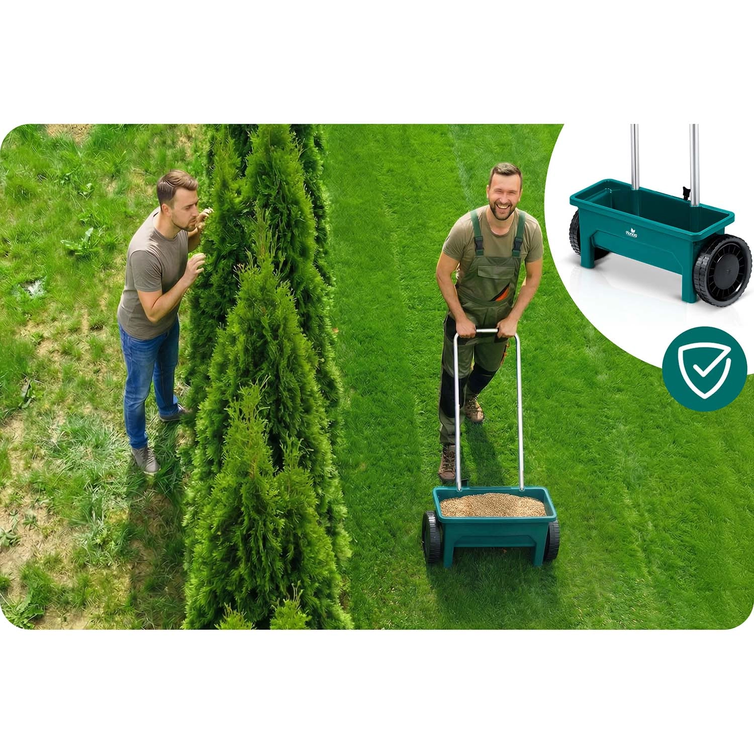 Fino nastavite pretok za različne materiale – od drobnih travnih semen do bolj grobe soli ali granulata. Enakomeren raztros brez nepotrebnega trošenja.