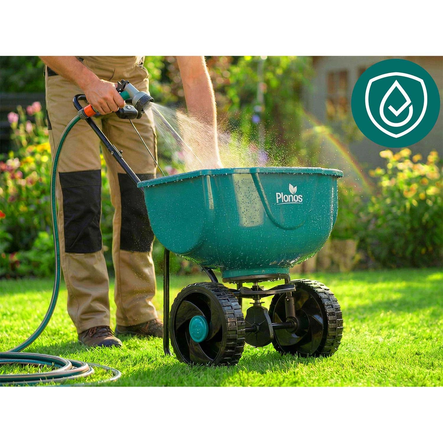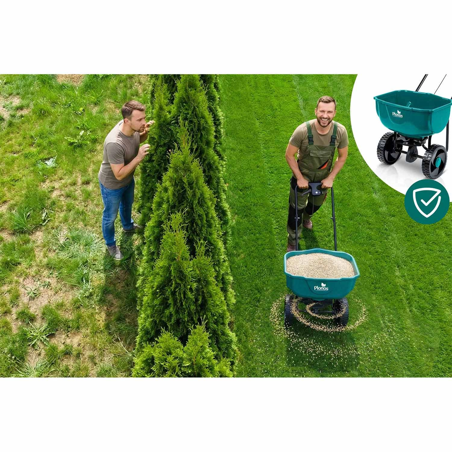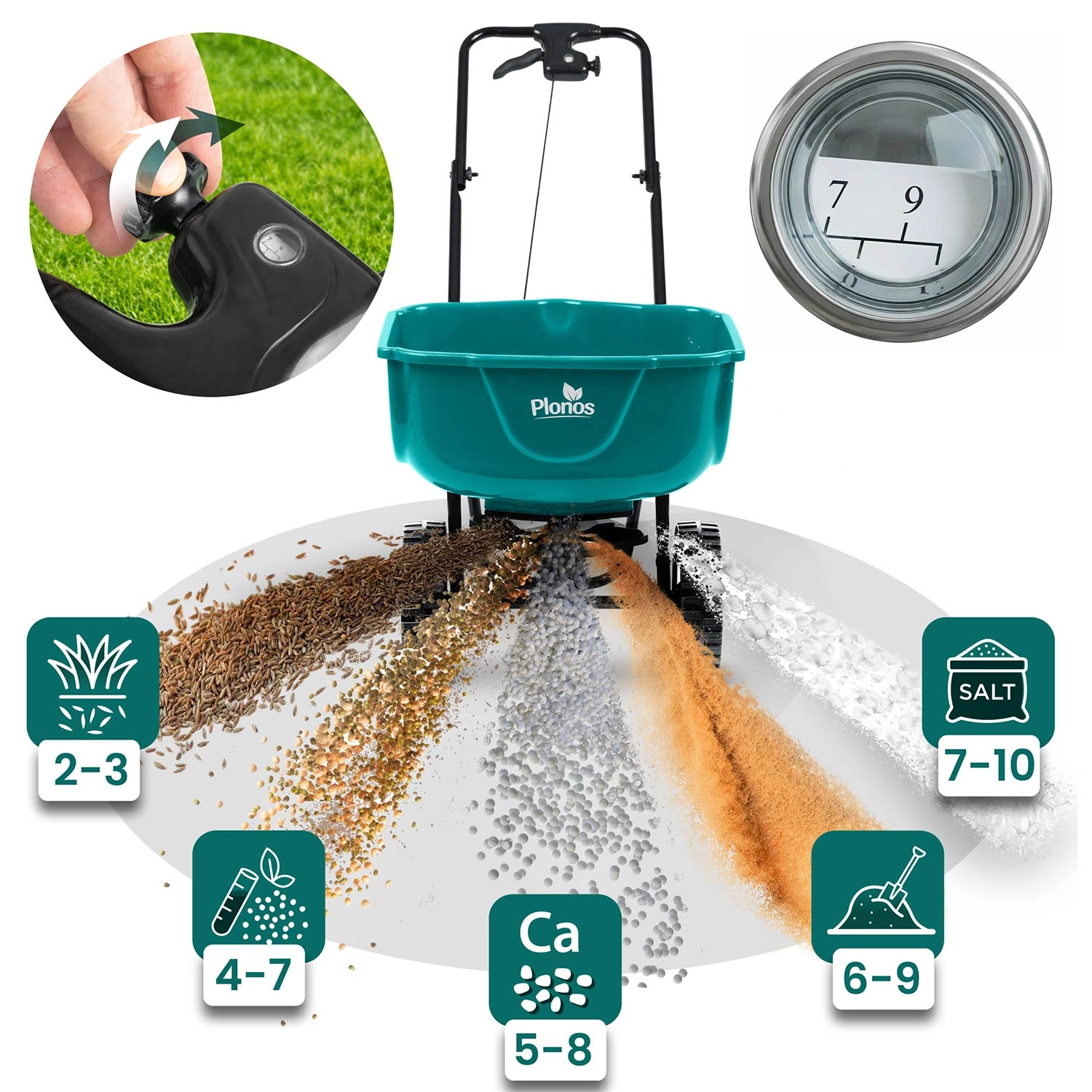 Trosilnik Plonos 27 l je zanesljiv pomočnik za enakomerno doziranje semen, granuliranih gnojil, posipne soli in peska. Zahvaljujoč nastavljivi količini doziranja v 10 korakih in širini raztrosa do 3 metre boste površino pokrili hitro, natančno in brez potrat. Ergonomski ročaj z integrirano regulacijo ter zaustavitveno ročico zagotavlja popoln nadzor nad pretokom materiala.