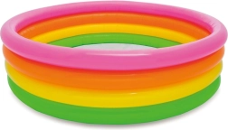 Napihljiv bazen INTEX s premerom 168 cm in višino 46 cm je odlična izbira za družine, ki iščejo hitro osvežitev in varno vodno igro za otroke. Zaradi štirih barvnih obročev je bazen stabilen, hkrati pa lahek in enostaven za prenašanje.