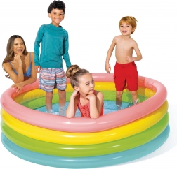 Večkrožna zasnova s štirimi napihljivimi obrobami zagotavlja stabilnost, boljše ohranjanje oblike in udobno naslanjanje otrok med igro.