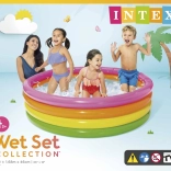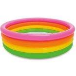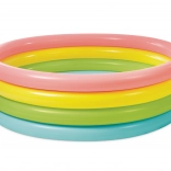 Uživajte v poletju s tem štiribarvnim napihljivim otroškim bazenom INTEX z merami 168 × 46 cm. Zaradi štirih stabilnih obročev je trden in udoben, pripravljen za polnjenje v 10 minutah. Idealen za manjše vrtove, ponuja osvežitev in veliko zabave za otroke z volumnom 780 l.