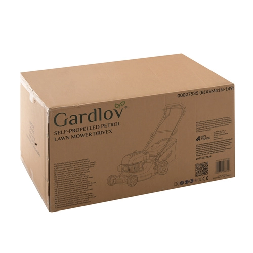 Zmogljiva bencinska kosilnica GARDLOV DriveX s samohodnim pogonom in širino reza 40,6 cm zagotavlja hitro in enakomerno košnjo tudi na večjih površinah. Zanesljiv motor 149 cm³ (2,3 kW) zlahka obvlada gost travni pokrov, velik koš 50 l prihrani čas, praktičen priključek za pranje ohišja pa olajša čiščenje po delu. S 8 stopnjami višine košnje (25–75 mm) in nastavljivim ročajem boste dosegli udobje in natančen rezultat.