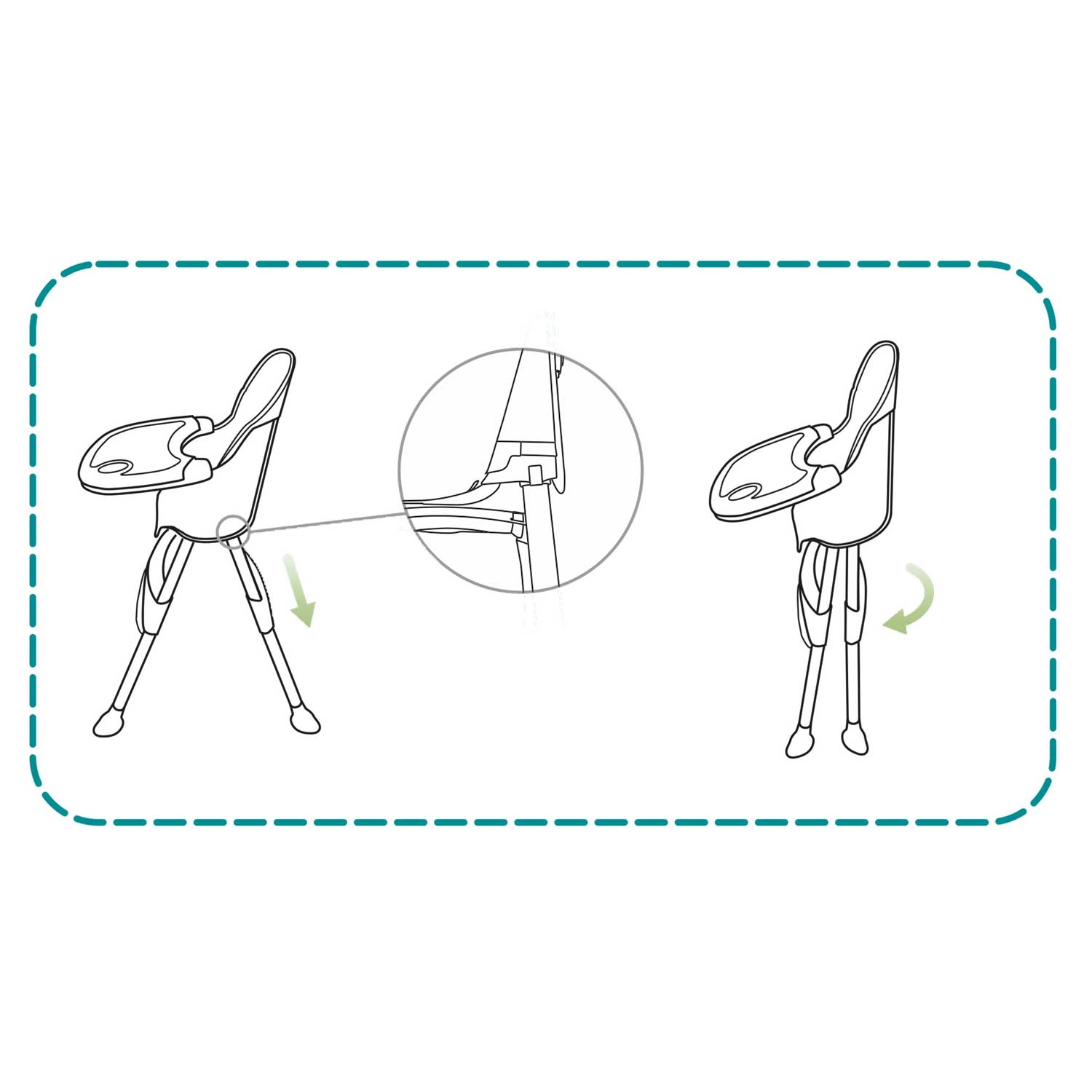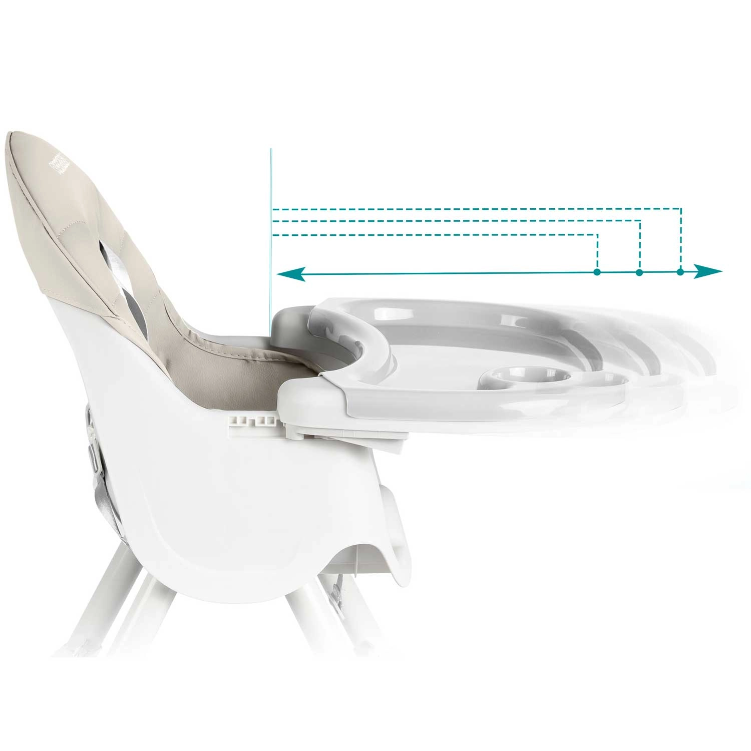 5-točkovni varnostni pas, nedrseče nogice in konstrukcija, ki izpolnjuje standard EN 14988, ščitijo vašega otroka pri hranjenju in igri.